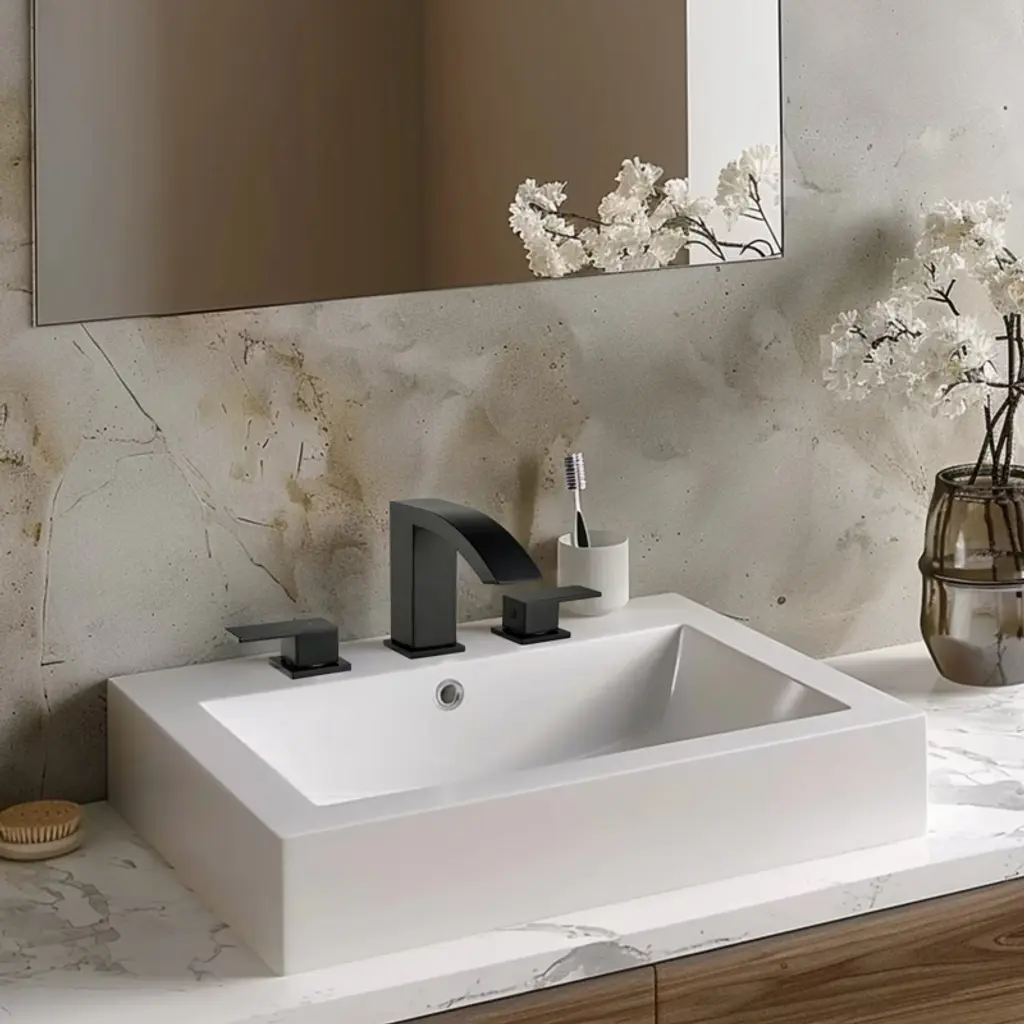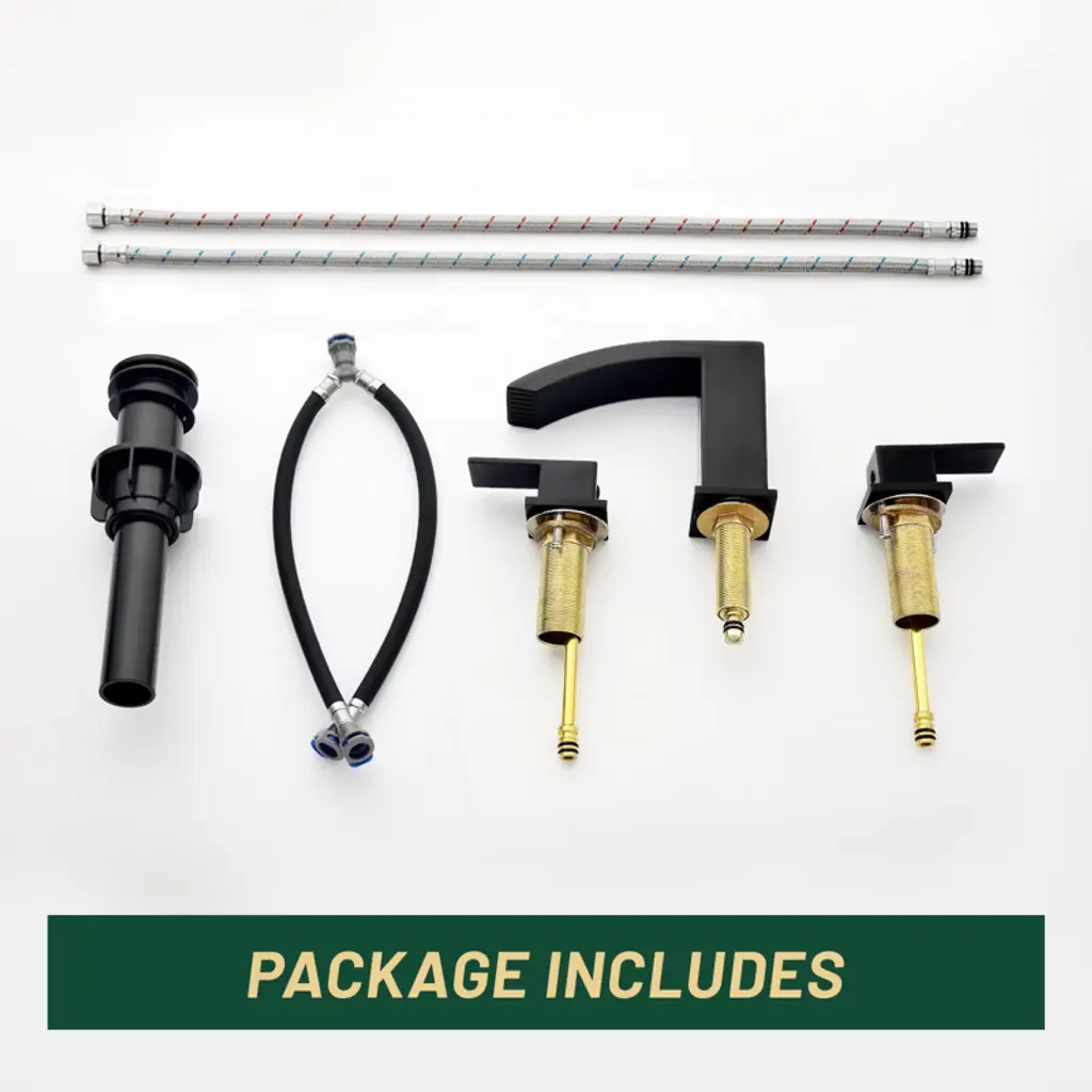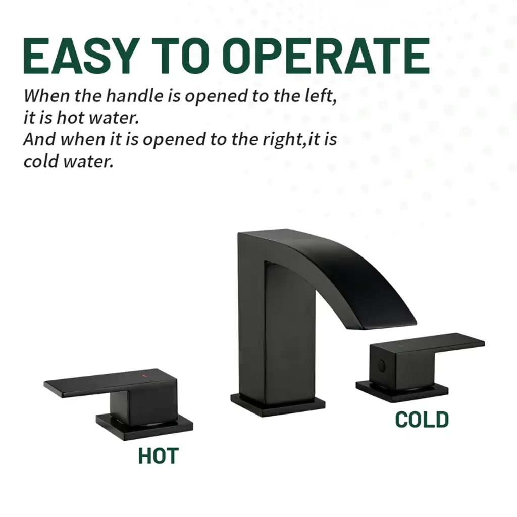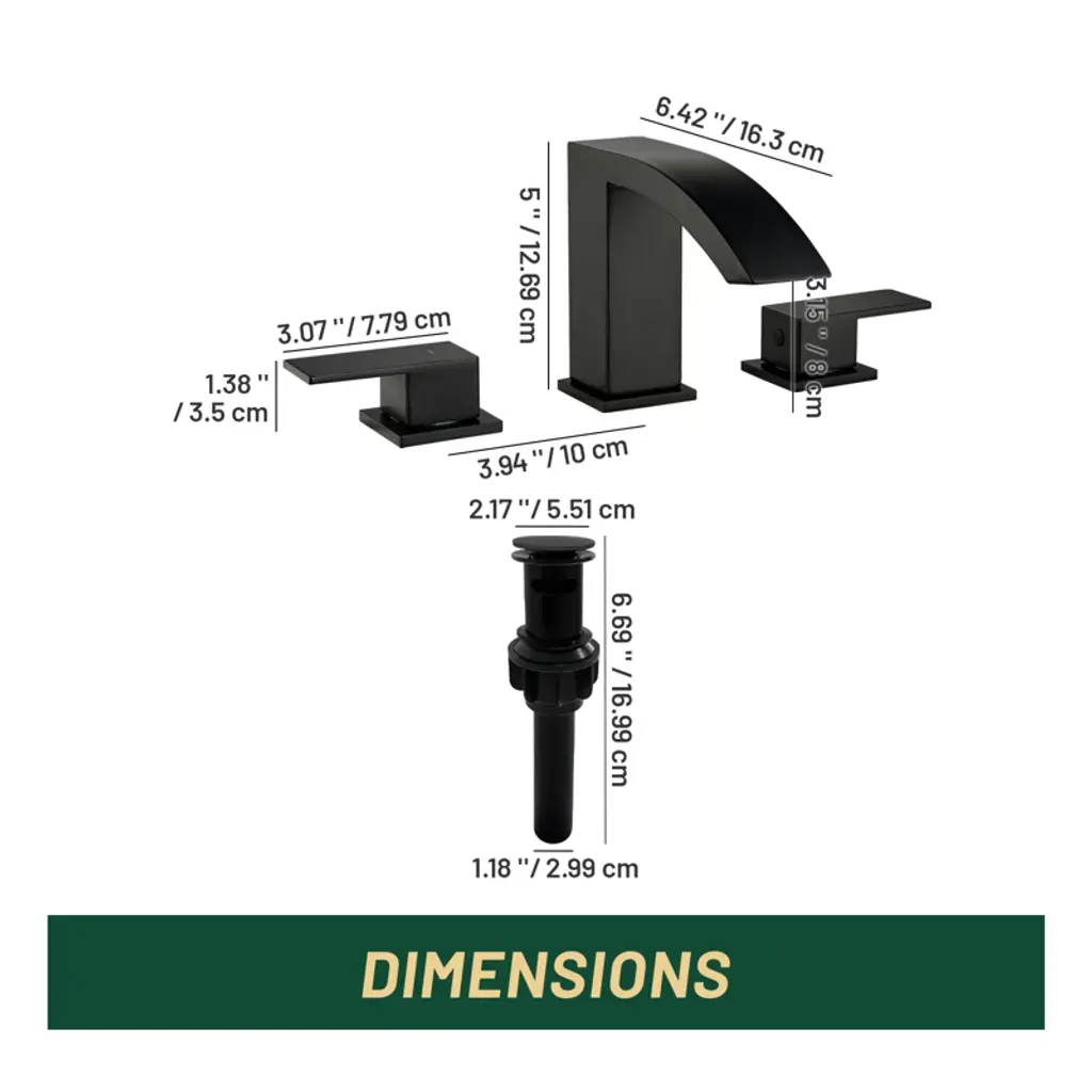 Cobbe Waterfall Bathroom Sink Faucet For Vanity 3-hole Installation 2-handle Faucet With Pop-up Drain Matte Black