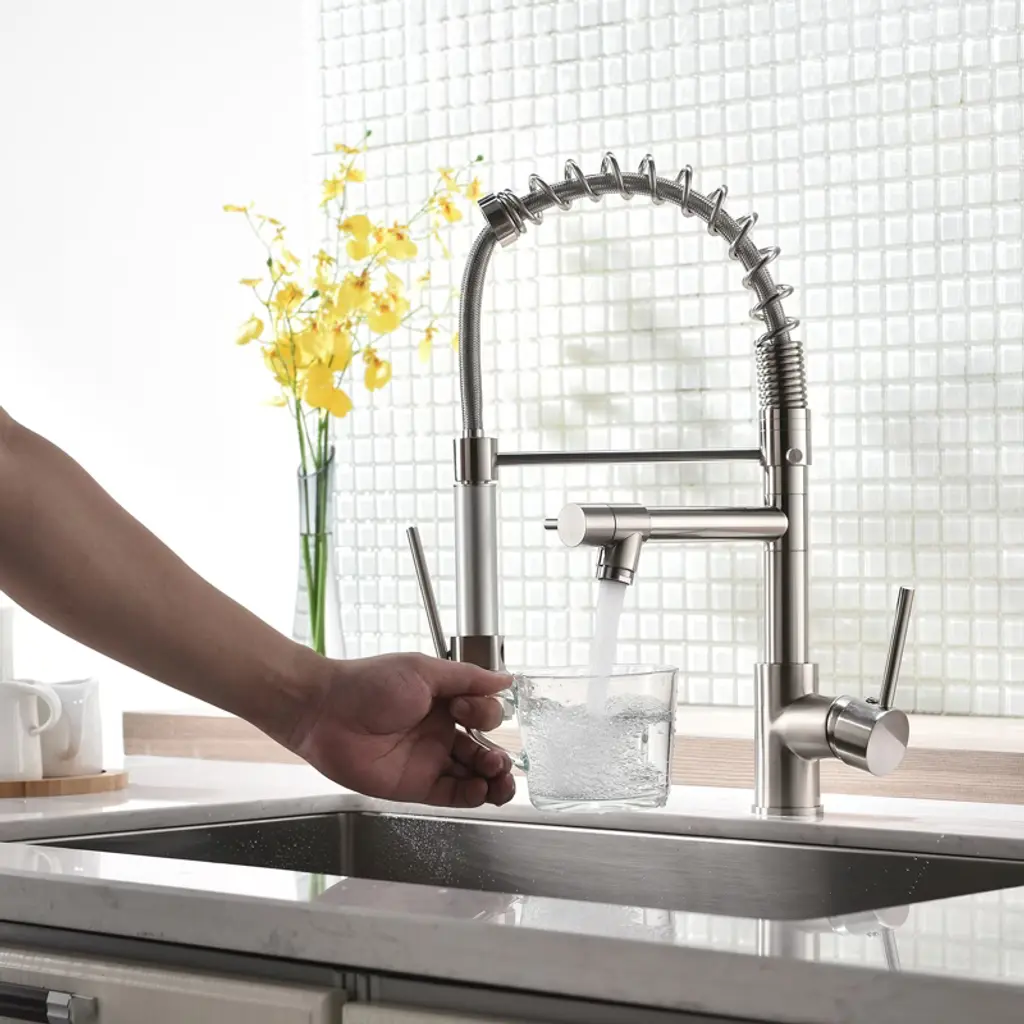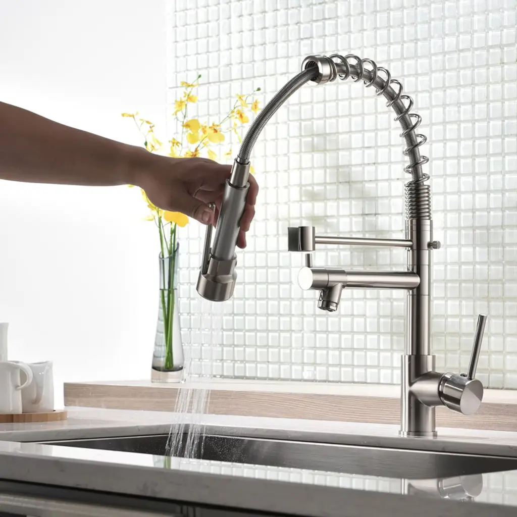 Commercial Black And Nickel Gold Kitchen Faucet With Pull Out Sprayer