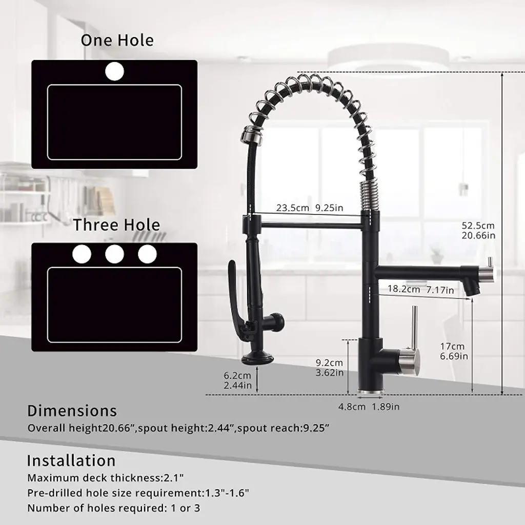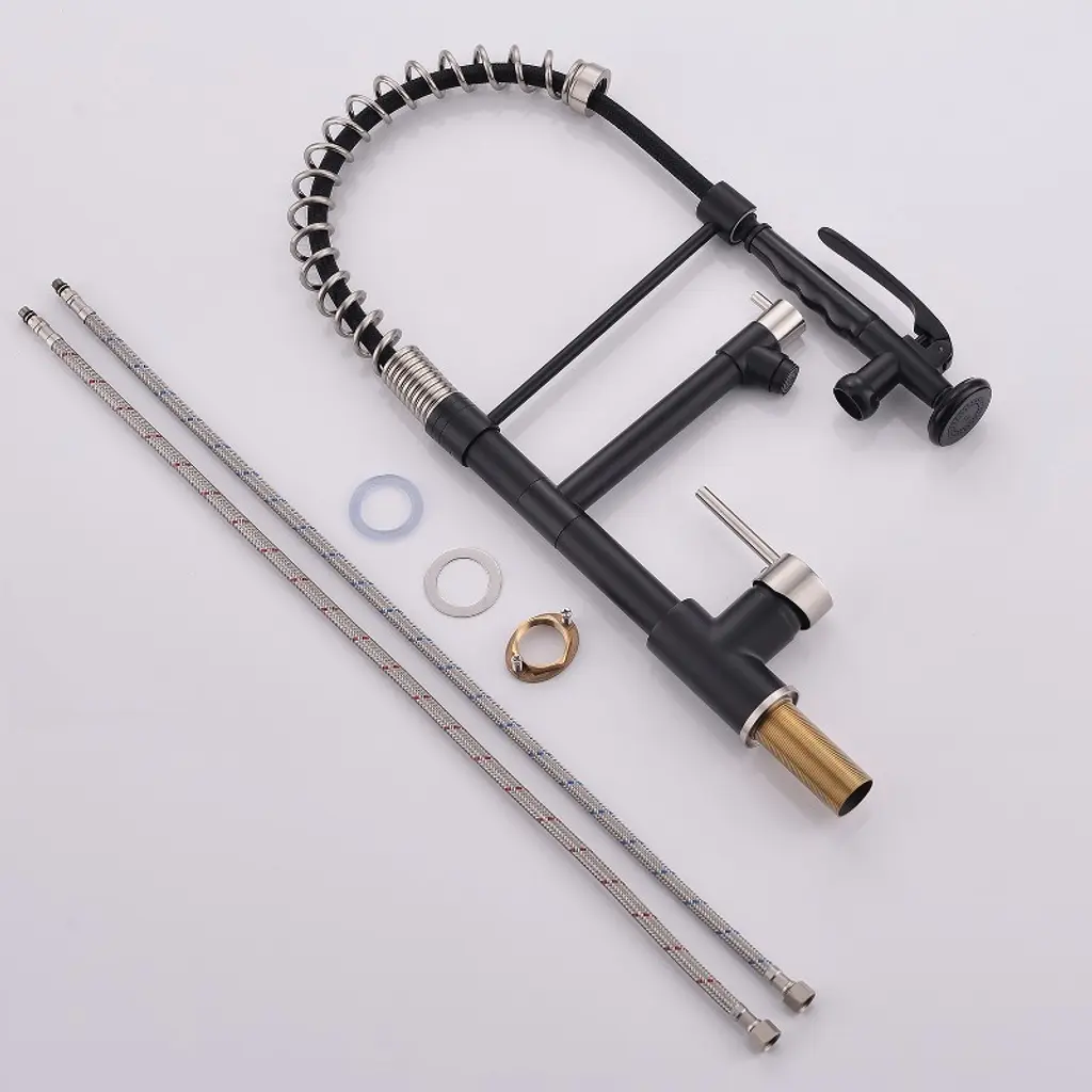Commercial Kitchen Faucet, Pull Down Sprayer Black And Nickel, Single Handle