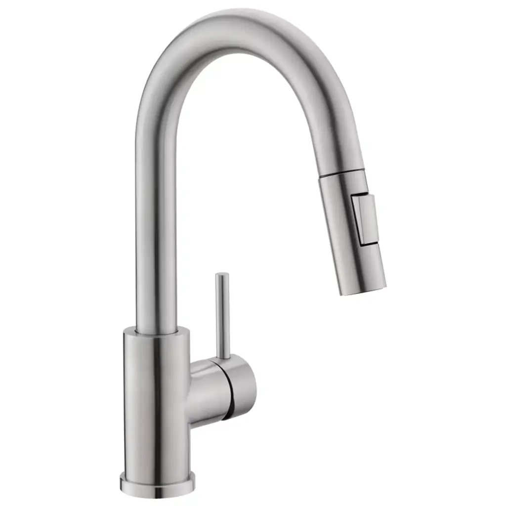 LED kitchen faucet with pull-down sprayer, single handle lever, designed for efficiency and modern kitchens.