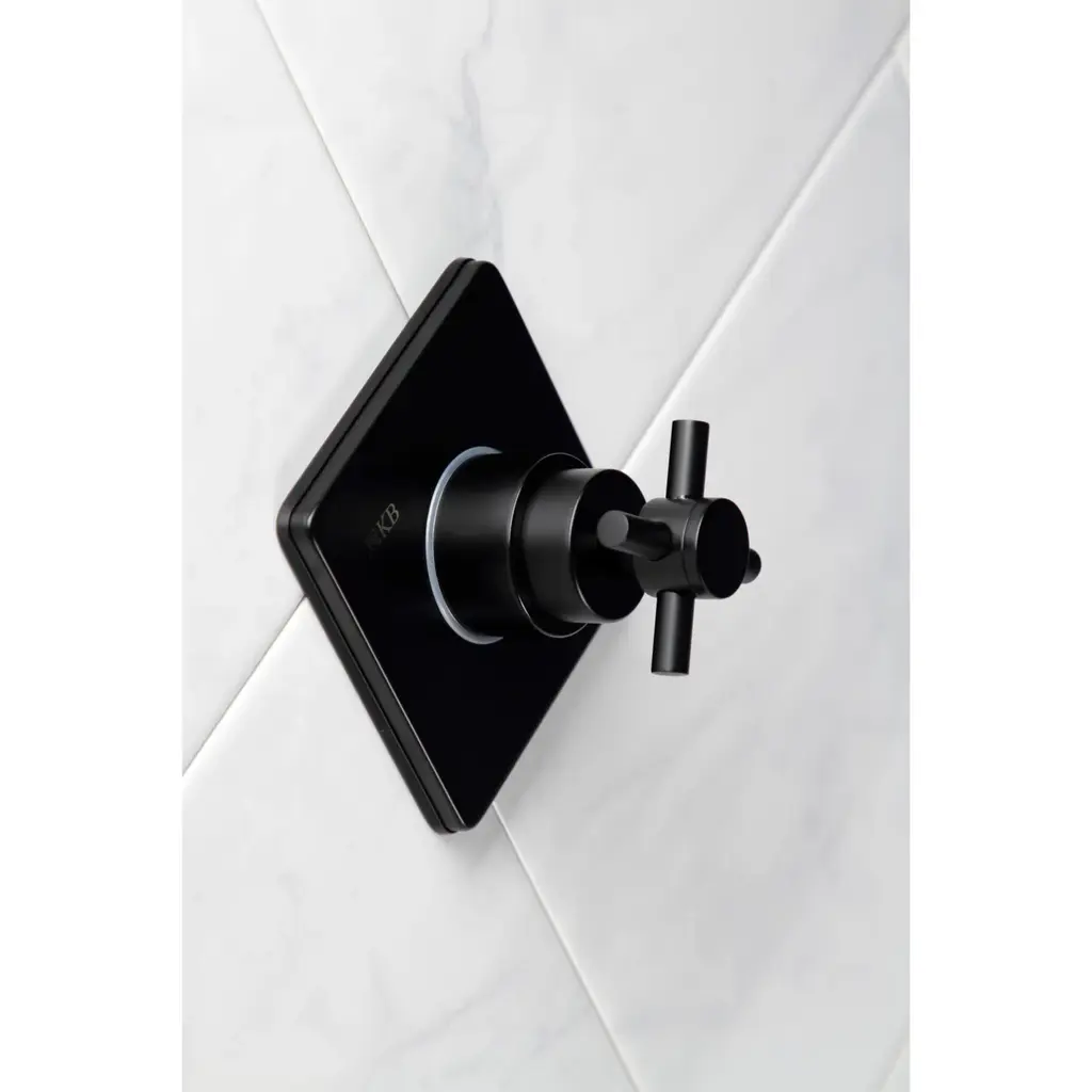 This cross handle, diverter valve and face plate help direct water to divert into three different ways, usually for the shower head, hand shower or tub spout. Each component is crafted with solid brass for durable long-term use. The diverter valve features one inlet to three outlets, to move water to its desired destination. Easy to install, the diverter is usable with hot and cold water and complies with other modern designs.Features1 inlet 3 outlets for added versatilityIn-wall installation1/2-14 NPT female inlet connection4-5/16" square shower faceplateSingle cross handle for easy operationCorrosion-resistant finishDesigned for long-lasting durability
