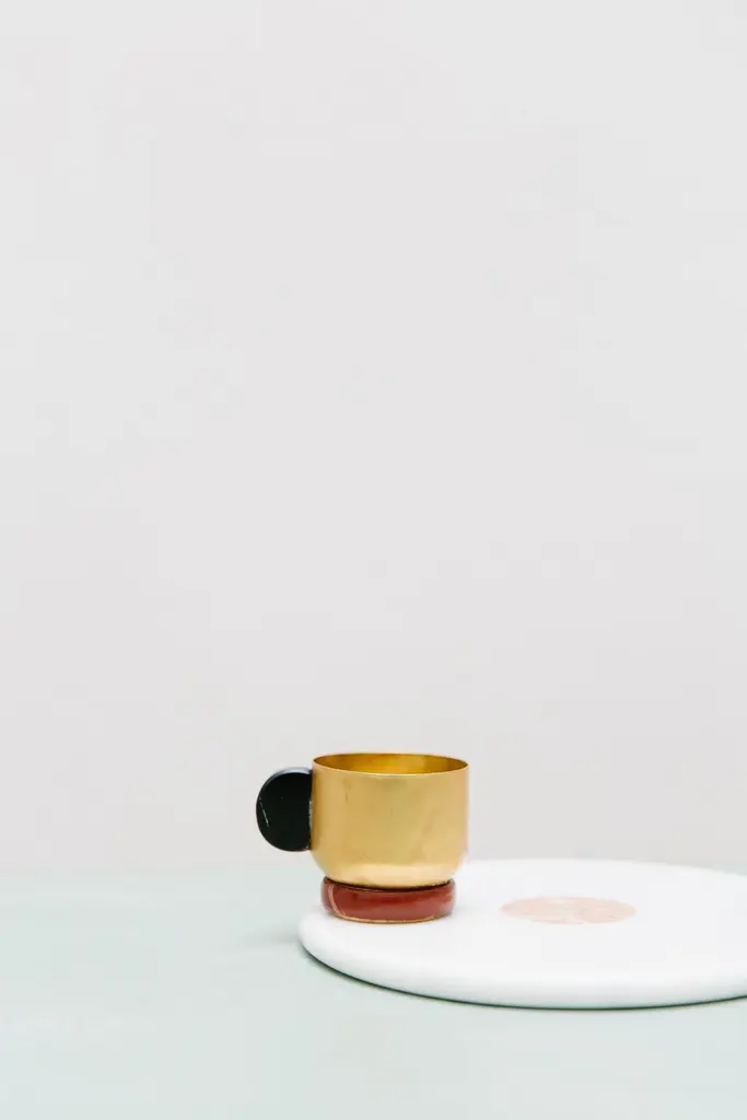 Elevate your daily tea or coffee ritual with our exquisite Onix cup. The plated brass cup is handcrafted in Italy using sheet turning techniques. The handle, adorned with a Onix stone, introduces a touch of jewelry-inspired sophistication to your tableware. Experience the perfect blend of aesthetics and functionality in our perline torch cup.Color: gold plated brass Stone: onix stoneHandcrafted in Italy