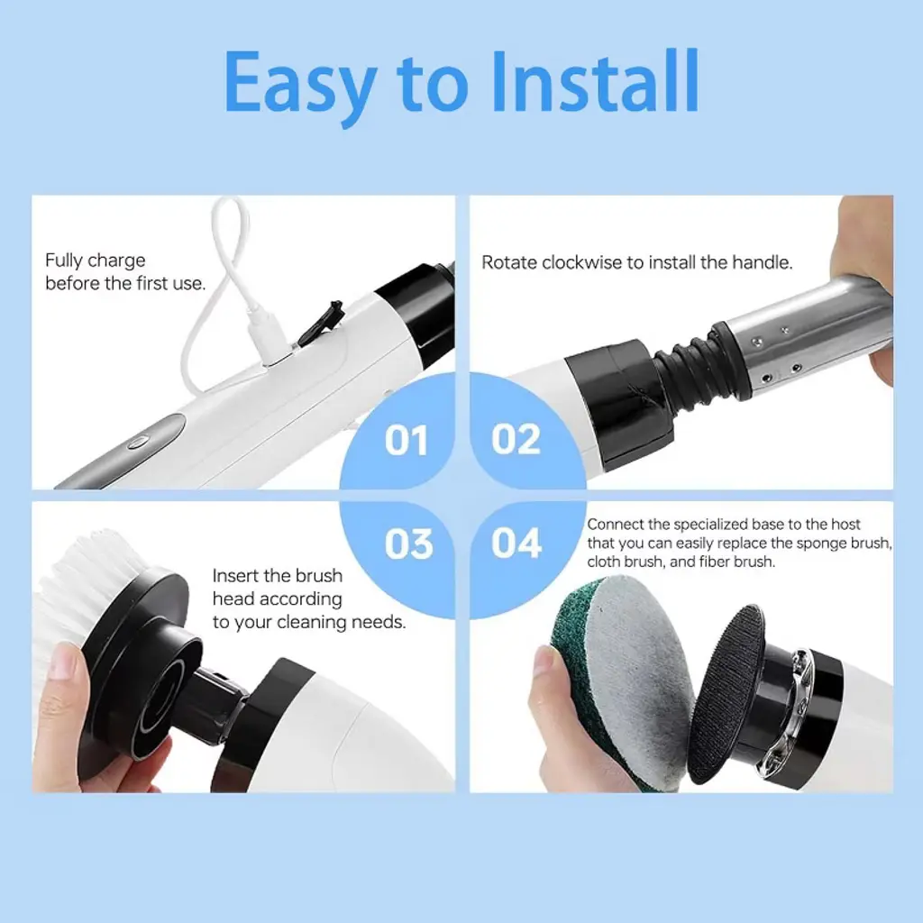 This motorized electric scrubber delivers deep cleaning power with two adjustable speeds (350/450 RPM) to tackle tough grime, mold, and stains on tile, grout, bathtubs, sinks, floors, and more. The 8 interchangeable brush heads (round, flat, pointed, cloth, and fiber) handle every surface—from shower corners to car wheels. A 45-inch detachable handle reaches high ceilings and low floors without bending, while the short handle offers precision control. Features 90-minute runtime per charge (quick 3.5-hour charging) and an LED battery display for convenience. No cords, no hassle—just effortless cleaning anywhere!