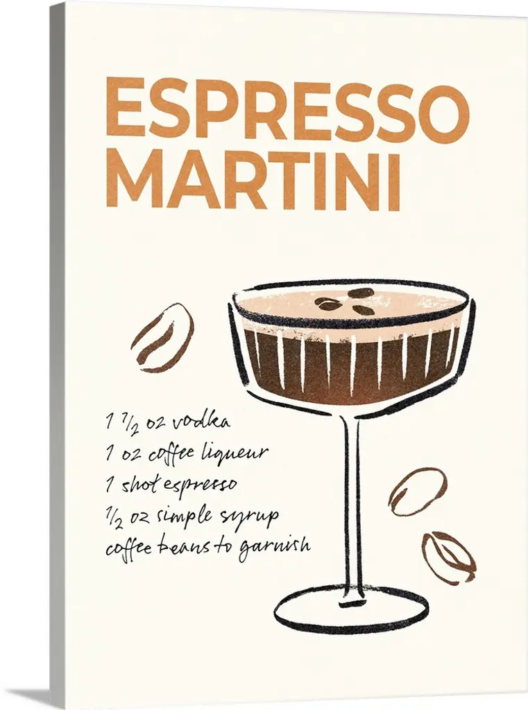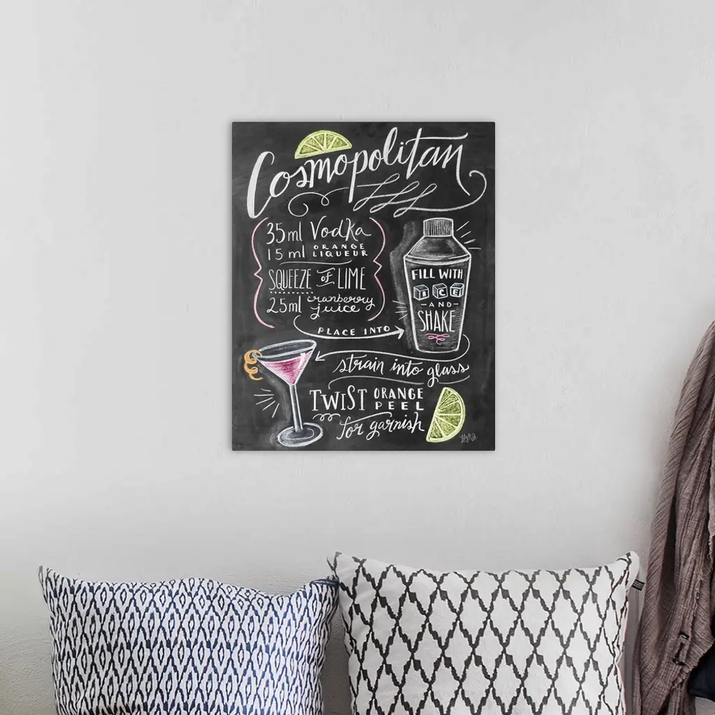 Recipe for a mixed drink hand written and illustrated in chalk on a black background.