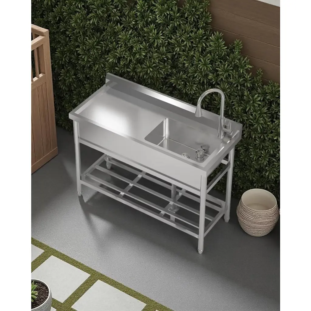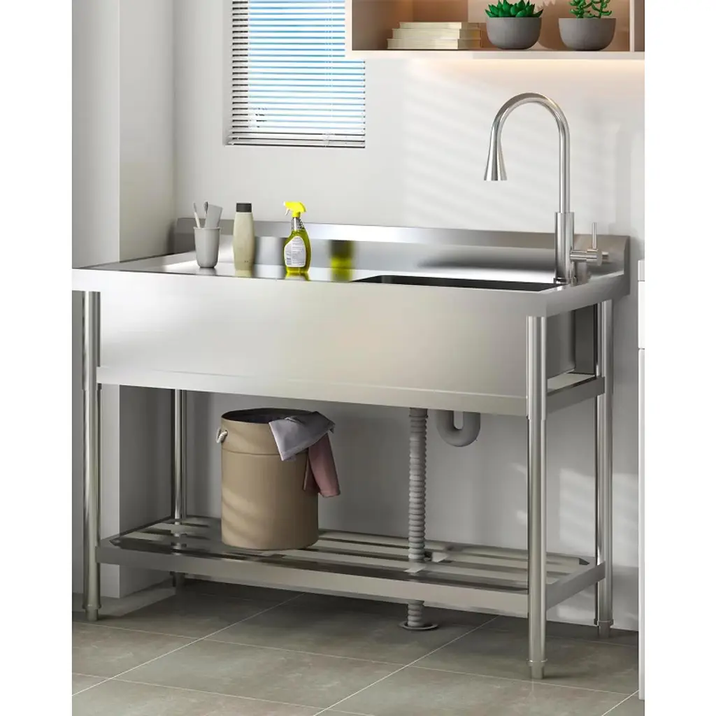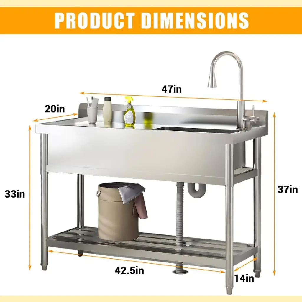 Coucheta Freestanding Single Bowl Utility Sink, 47"x20"x37" With Pull-out Faucet, Workbench, Hot & Cold Plumbing For Home & Garage