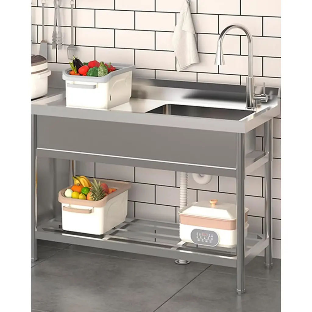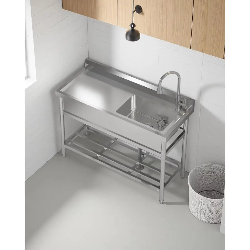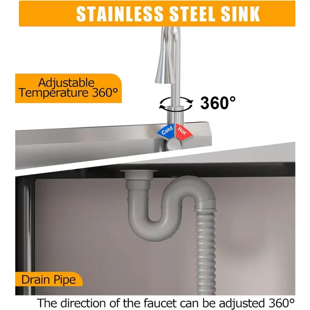 Coucheta Freestanding Single Bowl Utility Sink, 47"x20"x37" With Pull-out Faucet, Workbench, Hot & Cold Plumbing For Home & Garage