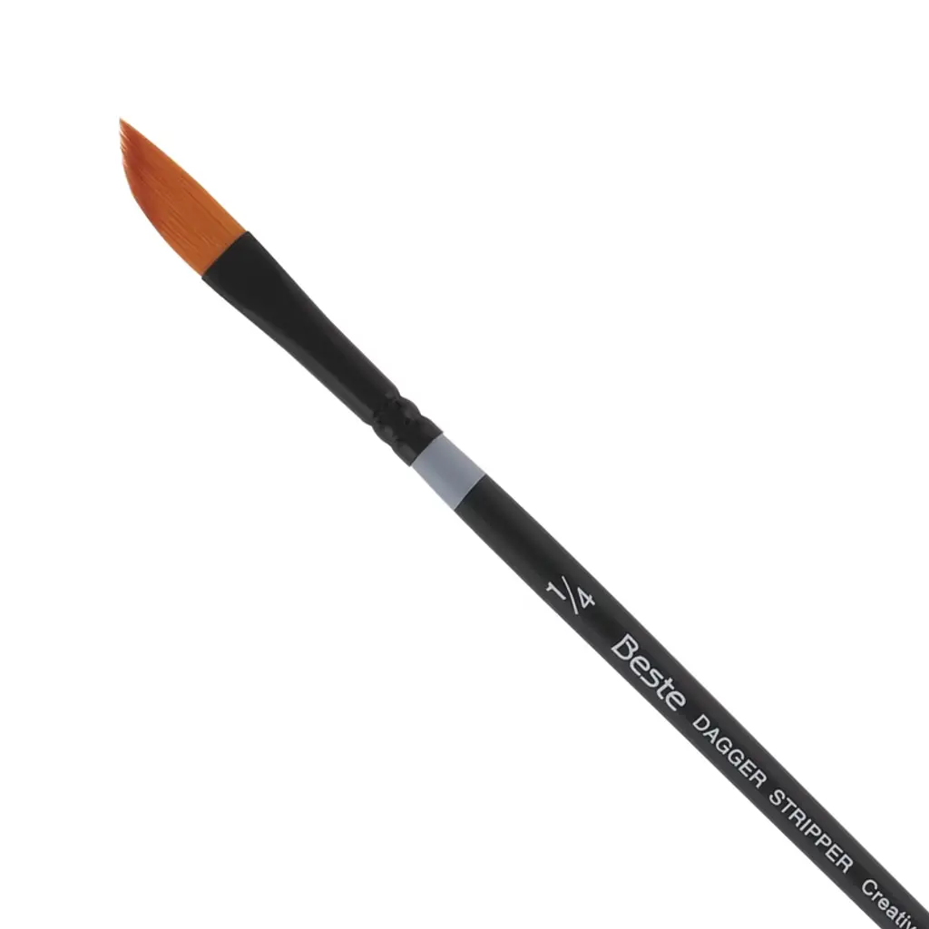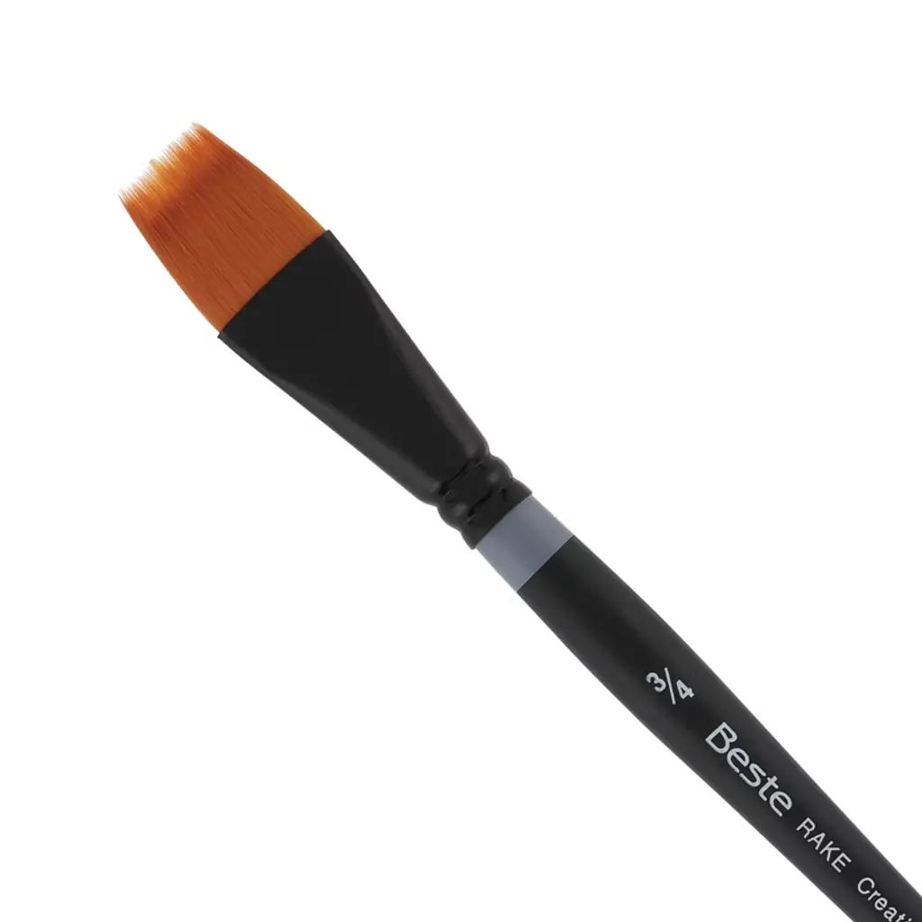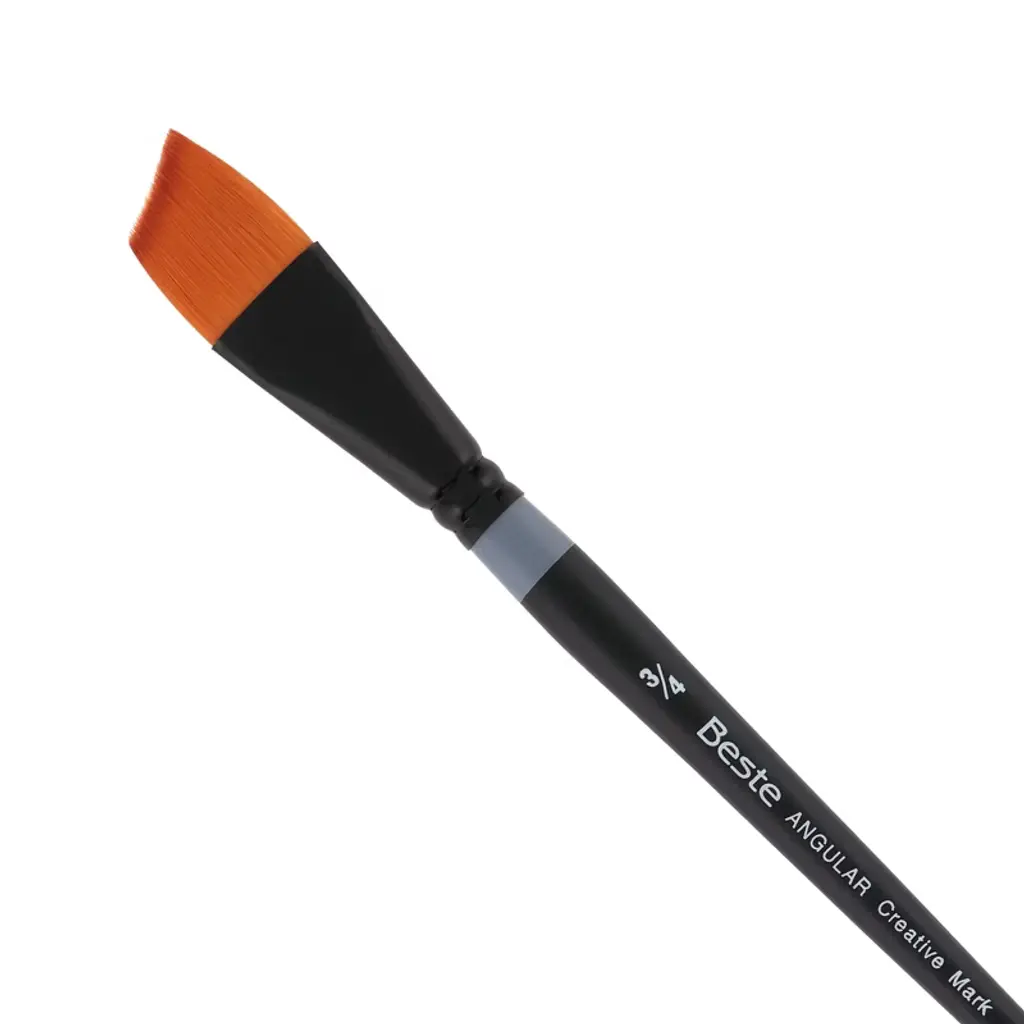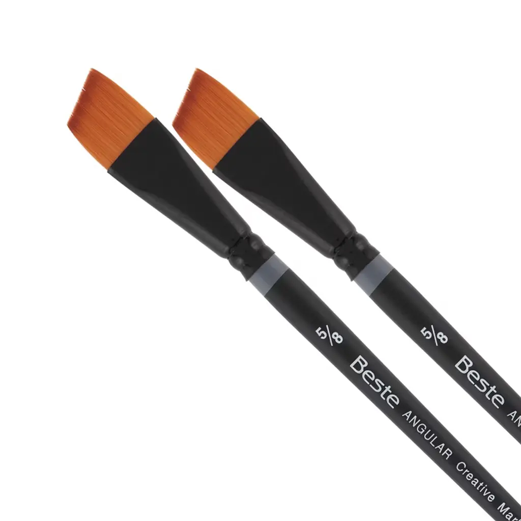 Introducing the Beste Golden Taklon Short Handle Line of Artist Brushes, a masterpiece in the realm of artist tools, designed to elevate your creative experience to new heights. This exquisite paint brush for acrylic painting is meticulously crafted for artists and professionals who demand nothing but the best for their projects. With its multi-diameter Golden Taklon hair, this brush is designed for maintaining exceptional working characteristics, ensuring your artistic expression is both precise and vibrant. The Golden Taklon Angular Brush is not just a tool, but an extension of your creative spirit. It holds color remarkably well, allowing for seamless transitions and vibrant hues that capture the essence of your imagination. Its sharp edges and split-free points guarantee precision, making it an excellent choice for detailed work and decoupage brush applications. The hair of this brush is expertly designed to absorb color and release it smoothly as it touches the painting surface, providing a fluid and responsive painting experience. The special ferrules, fashioned from brass and anodized in black, add a touch of elegance and durability, ensuring the brush's integrity over countless uses. Designed with a short handle and a matte black finish, the Beste Golden Taklon Angular Brush is ideal for artists who appreciate the agility and control that a compact design offers. This brush snaps back every time, retaining its shape and offering consistent performance across various media such as watercolor, acrylic, and more. Whether you're exploring the realms of watercolor brushes professional, crafting intricate designs with a flat paint brush, or seeking the perfect tool for fabric paint brush techniques, this versatile brush excels in every application. Its adaptability makes it a favored choice among professionals for tasks ranging from flat brushes for acrylic painting to the nuanced strokes of quill brushes watercolor.