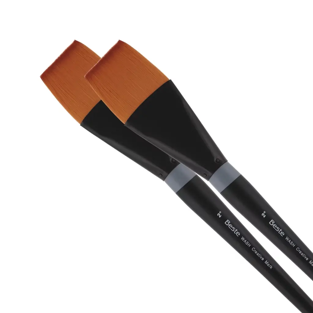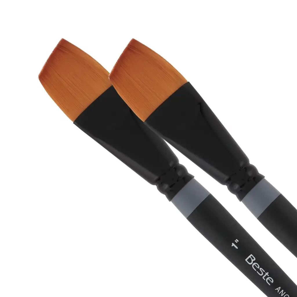 Introducing the Beste Golden Taklon Short Handle Line of Artist Brushes, a masterpiece in the realm of artist tools, designed to elevate your creative experience to new heights. This exquisite paint brush for acrylic painting is meticulously crafted for artists and professionals who demand nothing but the best for their projects. With its multi-diameter Golden Taklon hair, this brush is designed for maintaining exceptional working characteristics, ensuring your artistic expression is both precise and vibrant. The Golden Taklon Angular Brush is not just a tool, but an extension of your creative spirit. It holds color remarkably well, allowing for seamless transitions and vibrant hues that capture the essence of your imagination. Its sharp edges and split-free points guarantee precision, making it an excellent choice for detailed work and decoupage brush applications. The hair of this brush is expertly designed to absorb color and release it smoothly as it touches the painting surface, providing a fluid and responsive painting experience. The special ferrules, fashioned from brass and anodized in black, add a touch of elegance and durability, ensuring the brush's integrity over countless uses. Designed with a short handle and a matte black finish, the Beste Golden Taklon Angular Brush is ideal for artists who appreciate the agility and control that a compact design offers. This brush snaps back every time, retaining its shape and offering consistent performance across various media such as watercolor, acrylic, and more. Whether you're exploring the realms of watercolor brushes professional, crafting intricate designs with a flat paint brush, or seeking the perfect tool for fabric paint brush techniques, this versatile brush excels in every application. Its adaptability makes it a favored choice among professionals for tasks ranging from flat brushes for acrylic painting to the nuanced strokes of quill brushes watercolor.