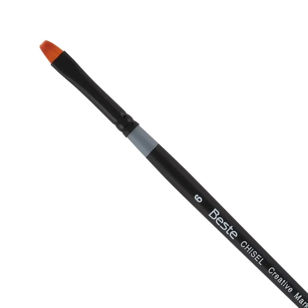 Introducing the Beste Golden Taklon Short Handle Line of Artist Brushes, a masterpiece in the realm of artist tools, designed to elevate your creative experience to new heights. This exquisite paint brush for acrylic painting is meticulously crafted for artists and professionals who demand nothing but the best for their projects. With its multi-diameter Golden Taklon hair, this brush is designed for maintaining exceptional working characteristics, ensuring your artistic expression is both precise and vibrant. The Golden Taklon Angular Brush is not just a tool, but an extension of your creative spirit. It holds color remarkably well, allowing for seamless transitions and vibrant hues that capture the essence of your imagination. Its sharp edges and split-free points guarantee precision, making it an excellent choice for detailed work and decoupage brush applications. The hair of this brush is expertly designed to absorb color and release it smoothly as it touches the painting surface, providing a fluid and responsive painting experience. The special ferrules, fashioned from brass and anodized in black, add a touch of elegance and durability, ensuring the brush's integrity over countless uses. Designed with a short handle and a matte black finish, the Beste Golden Taklon Angular Brush is ideal for artists who appreciate the agility and control that a compact design offers. This brush snaps back every time, retaining its shape and offering consistent performance across various media such as watercolor, acrylic, and more. Whether you're exploring the realms of watercolor brushes professional, crafting intricate designs with a flat paint brush, or seeking the perfect tool for fabric paint brush techniques, this versatile brush excels in every application. Its adaptability makes it a favored choice among professionals for tasks ranging from flat brushes for acrylic painting to the nuanced strokes of quill brushes watercolor.