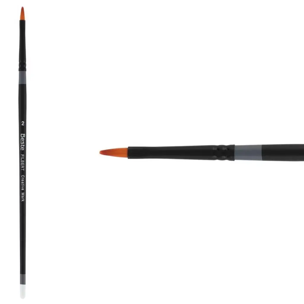 Creative Mark Beste Golden Taklon Filbert #2 - 3 Pack Artist Paint Brush, Professional Watercolor Brushes, For Acrylic Painting, Short Handle, Sharp