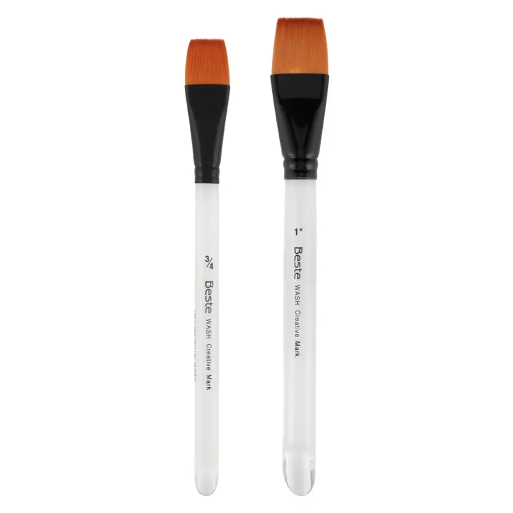 Creative Mark Beste Golden Taklon Gold Wash 1" - 2 Pack Artist Brush, Professional Watercolor Brushes, For Acrylic Painting, Short Handle, Sharp