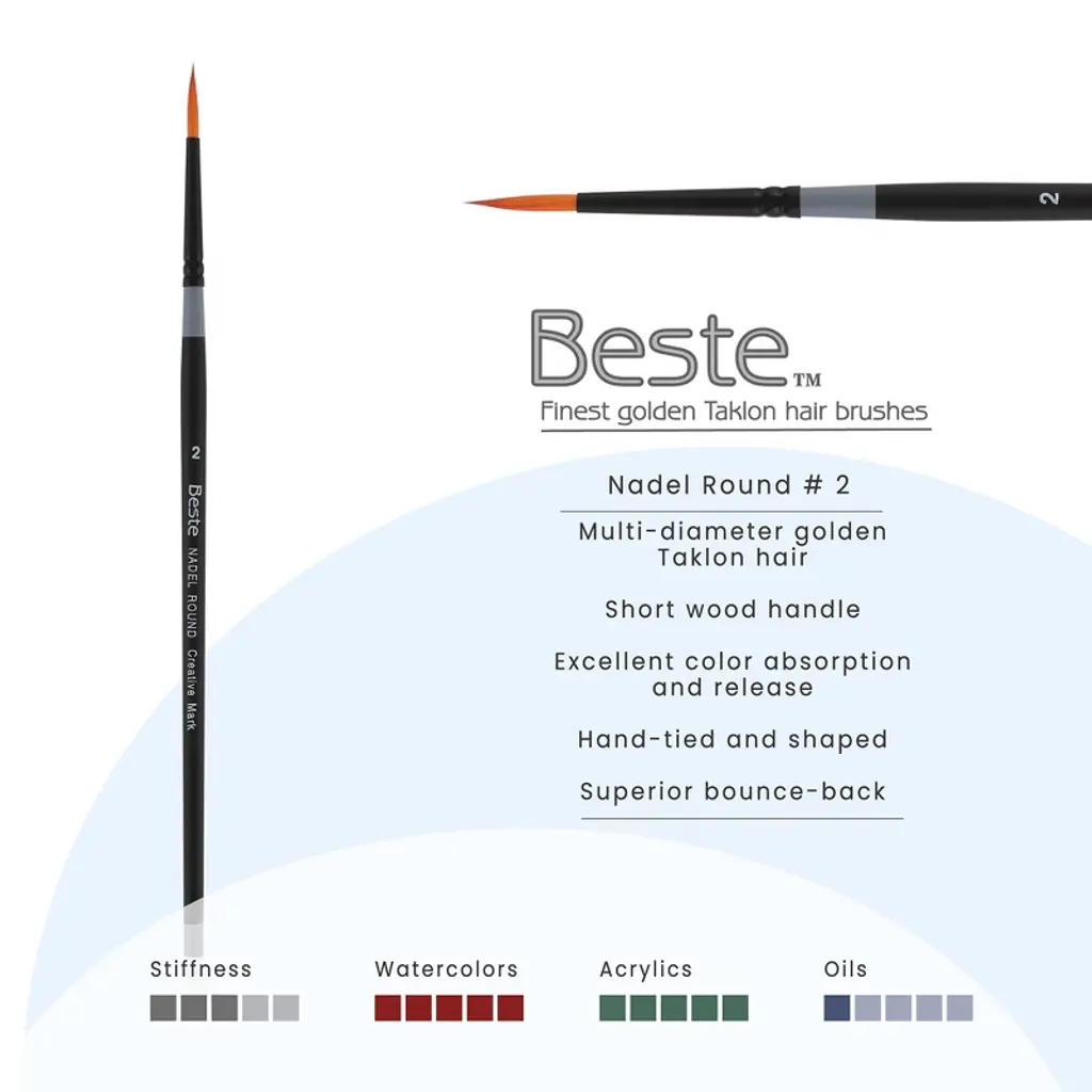 Introducing the Beste Golden Taklon Short Handle Line of Artist Brushes, a masterpiece in the realm of artist tools, designed to elevate your creative experience to new heights. This exquisite paint brush for acrylic painting is meticulously crafted for artists and professionals who demand nothing but the best for their projects. With its multi-diameter Golden Taklon hair, this brush is designed for maintaining exceptional working characteristics, ensuring your artistic expression is both precise and vibrant. The Golden Taklon Angular Brush is not just a tool, but an extension of your creative spirit. It holds color remarkably well, allowing for seamless transitions and vibrant hues that capture the essence of your imagination. Its sharp edges and split-free points guarantee precision, making it an excellent choice for detailed work and decoupage brush applications. The hair of this brush is expertly designed to absorb color and release it smoothly as it touches the painting surface, providing a fluid and responsive painting experience. The special ferrules, fashioned from brass and anodized in black, add a touch of elegance and durability, ensuring the brush's integrity over countless uses. Designed with a short handle and a matte black finish, the Beste Golden Taklon Angular Brush is ideal for artists who appreciate the agility and control that a compact design offers. This brush snaps back every time, retaining its shape and offering consistent performance across various media such as watercolor, acrylic, and more. Whether you're exploring the realms of watercolor brushes professional, crafting intricate designs with a flat paint brush, or seeking the perfect tool for fabric paint brush techniques, this versatile brush excels in every application. Its adaptability makes it a favored choice among professionals for tasks ranging from flat brushes for acrylic painting to the nuanced strokes of quill brushes watercolor.