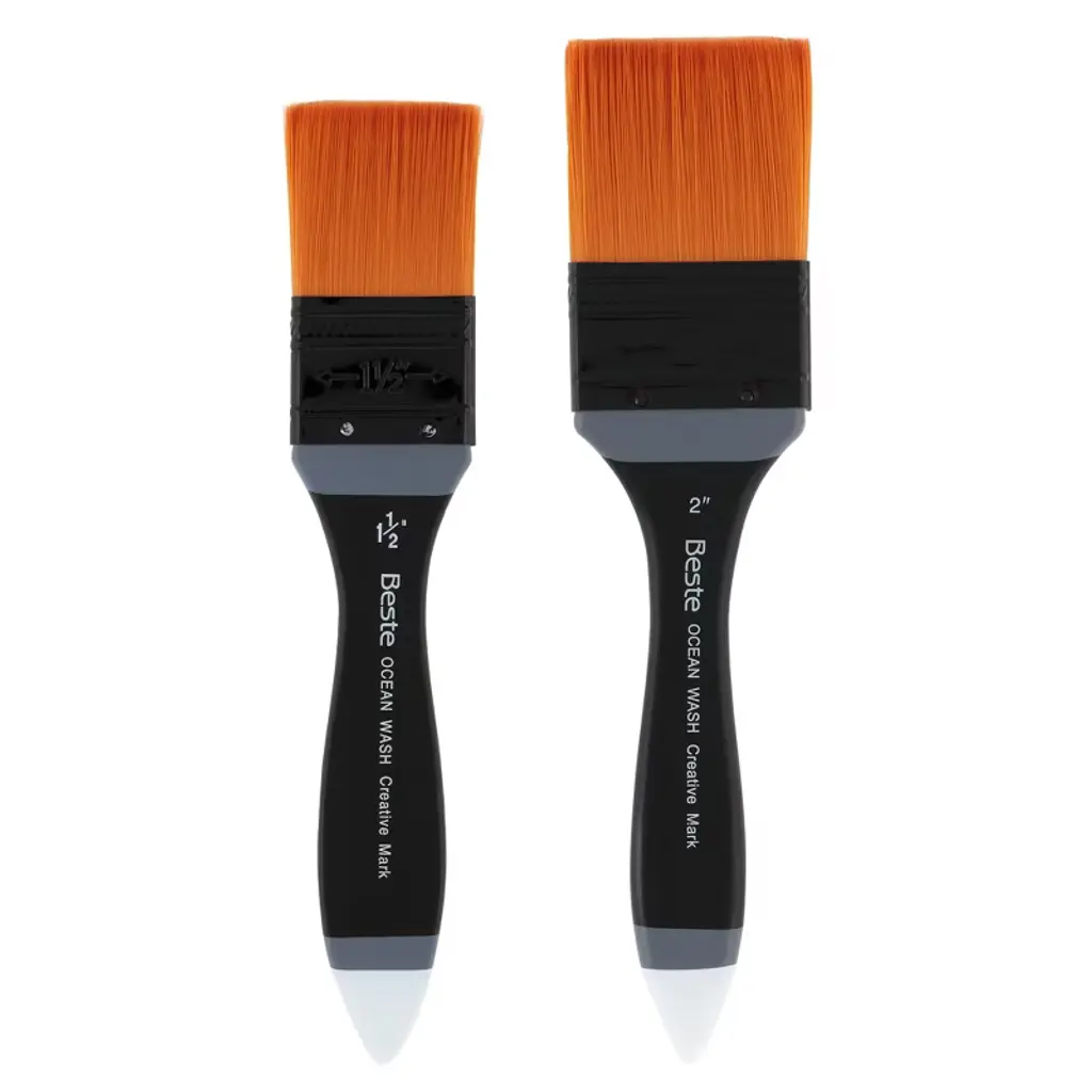 Creative Mark Beste Golden Taklon Ocean Wash, 2" Artist Paint Brush, Professional Watercolor Brushes, For Acrylic Painting, Short Handle, Sharp Edges,