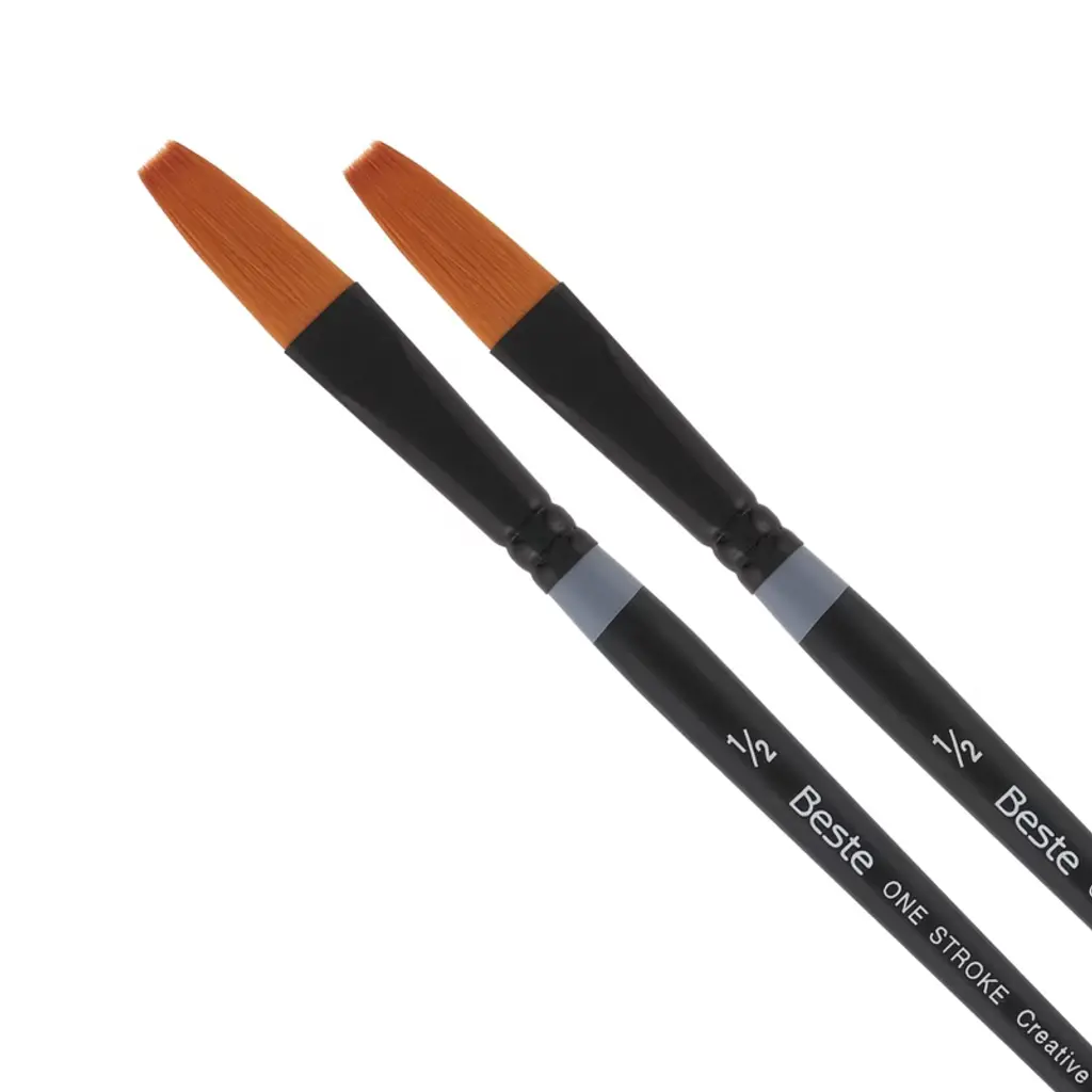 Creative Mark Beste Golden Taklon One Stroke, 1" - 2 Pack Artist Paint Brush, Professional Watercolor Brushes, For Acrylic Painting, Short Handle,