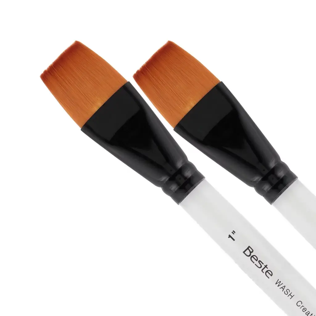 Introducing the Beste Golden Taklon Short Handle Line of Artist Brushes, a masterpiece in the realm of artist tools, designed to elevate your creative experience to new heights. This exquisite paint brush for acrylic painting is meticulously crafted for artists and professionals who demand nothing but the best for their projects. With its multi-diameter Golden Taklon hair, this brush is designed for maintaining exceptional working characteristics, ensuring your artistic expression is both precise and vibrant. The Golden Taklon Angular Brush is not just a tool, but an extension of your creative spirit. It holds color remarkably well, allowing for seamless transitions and vibrant hues that capture the essence of your imagination. Its sharp edges and split-free points guarantee precision, making it an excellent choice for detailed work and decoupage brush applications. The hair of this brush is expertly designed to absorb color and release it smoothly as it touches the painting surface, providing a fluid and responsive painting experience. The special ferrules, fashioned from brass and anodized in black, add a touch of elegance and durability, ensuring the brush's integrity over countless uses. Designed with a short handle and a matte black finish, the Beste Golden Taklon Angular Brush is ideal for artists who appreciate the agility and control that a compact design offers. This brush snaps back every time, retaining its shape and offering consistent performance across various media such as watercolor, acrylic, and more. Whether you're exploring the realms of watercolor brushes professional, crafting intricate designs with a flat paint brush, or seeking the perfect tool for fabric paint brush techniques, this versatile brush excels in every application. Its adaptability makes it a favored choice among professionals for tasks ranging from flat brushes for acrylic painting to the nuanced strokes of quill brushes watercolor.