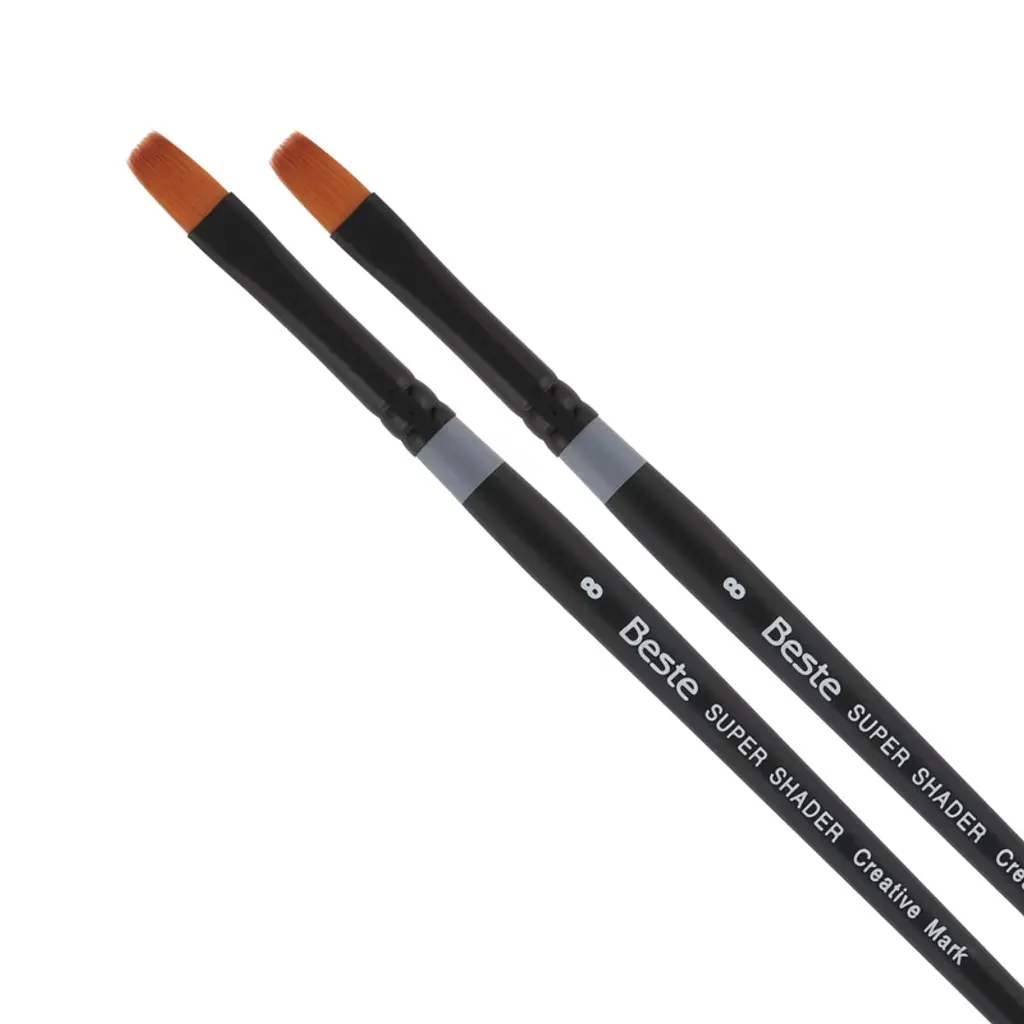 Introducing the Beste Golden Taklon Short Handle Line of Artist Brushes, a masterpiece in the realm of artist tools, designed to elevate your creative experience to new heights. This exquisite paint brush for acrylic painting is meticulously crafted for artists and professionals who demand nothing but the best for their projects. With its multi-diameter Golden Taklon hair, this brush is designed for maintaining exceptional working characteristics, ensuring your artistic expression is both precise and vibrant. The Golden Taklon Angular Brush is not just a tool, but an extension of your creative spirit. It holds color remarkably well, allowing for seamless transitions and vibrant hues that capture the essence of your imagination. Its sharp edges and split-free points guarantee precision, making it an excellent choice for detailed work and decoupage brush applications. The hair of this brush is expertly designed to absorb color and release it smoothly as it touches the painting surface, providing a fluid and responsive painting experience. The special ferrules, fashioned from brass and anodized in black, add a touch of elegance and durability, ensuring the brush's integrity over countless uses. Designed with a short handle and a matte black finish, the Beste Golden Taklon Angular Brush is ideal for artists who appreciate the agility and control that a compact design offers. This brush snaps back every time, retaining its shape and offering consistent performance across various media such as watercolor, acrylic, and more. Whether you're exploring the realms of watercolor brushes professional, crafting intricate designs with a flat paint brush, or seeking the perfect tool for fabric paint brush techniques, this versatile brush excels in every application. Its adaptability makes it a favored choice among professionals for tasks ranging from flat brushes for acrylic painting to the nuanced strokes of quill brushes watercolor.
