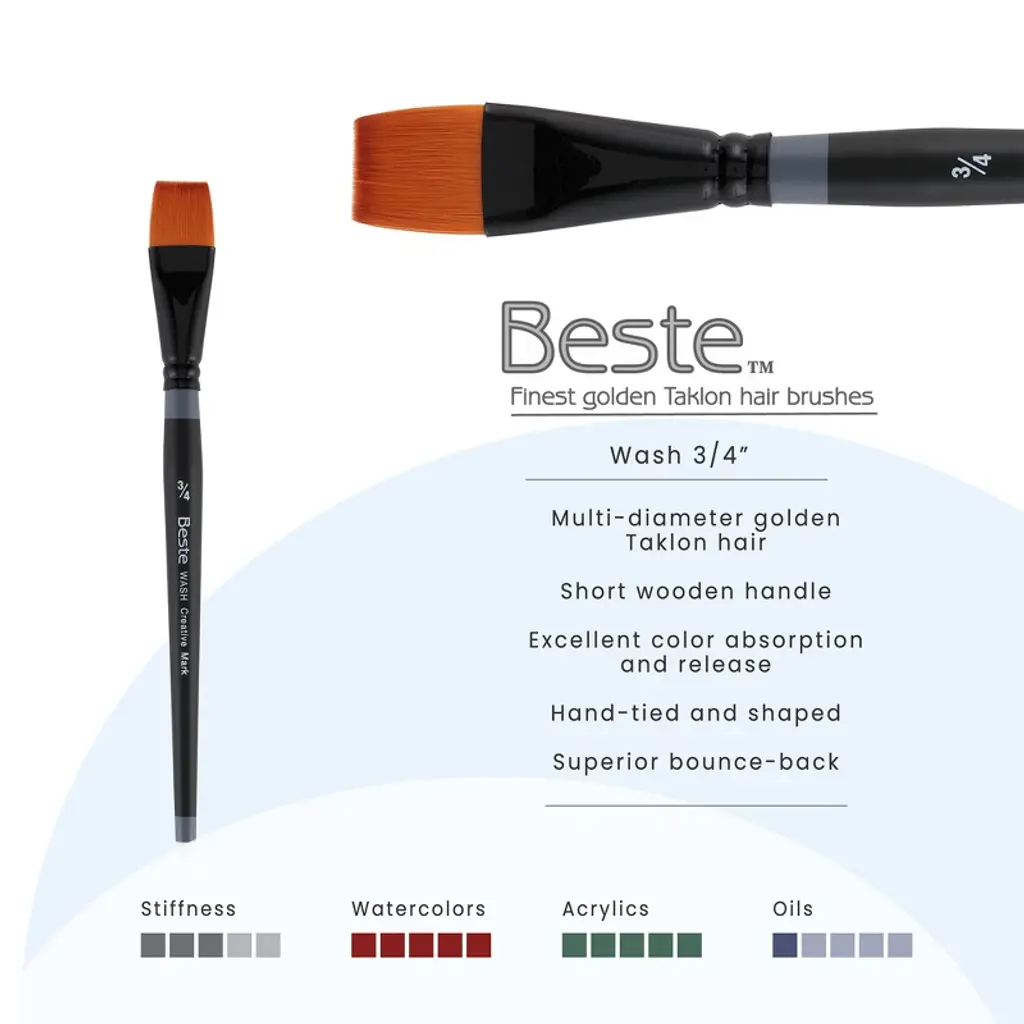Creative Mark Beste Golden Taklon Wash 3/4" - 2 Pack Artist Brush, Professional Watercolor Brushes, For Acrylic Painting, Short Handle, Sharp Edges,