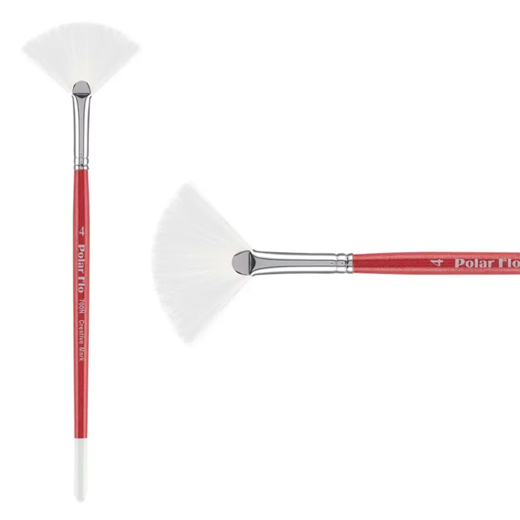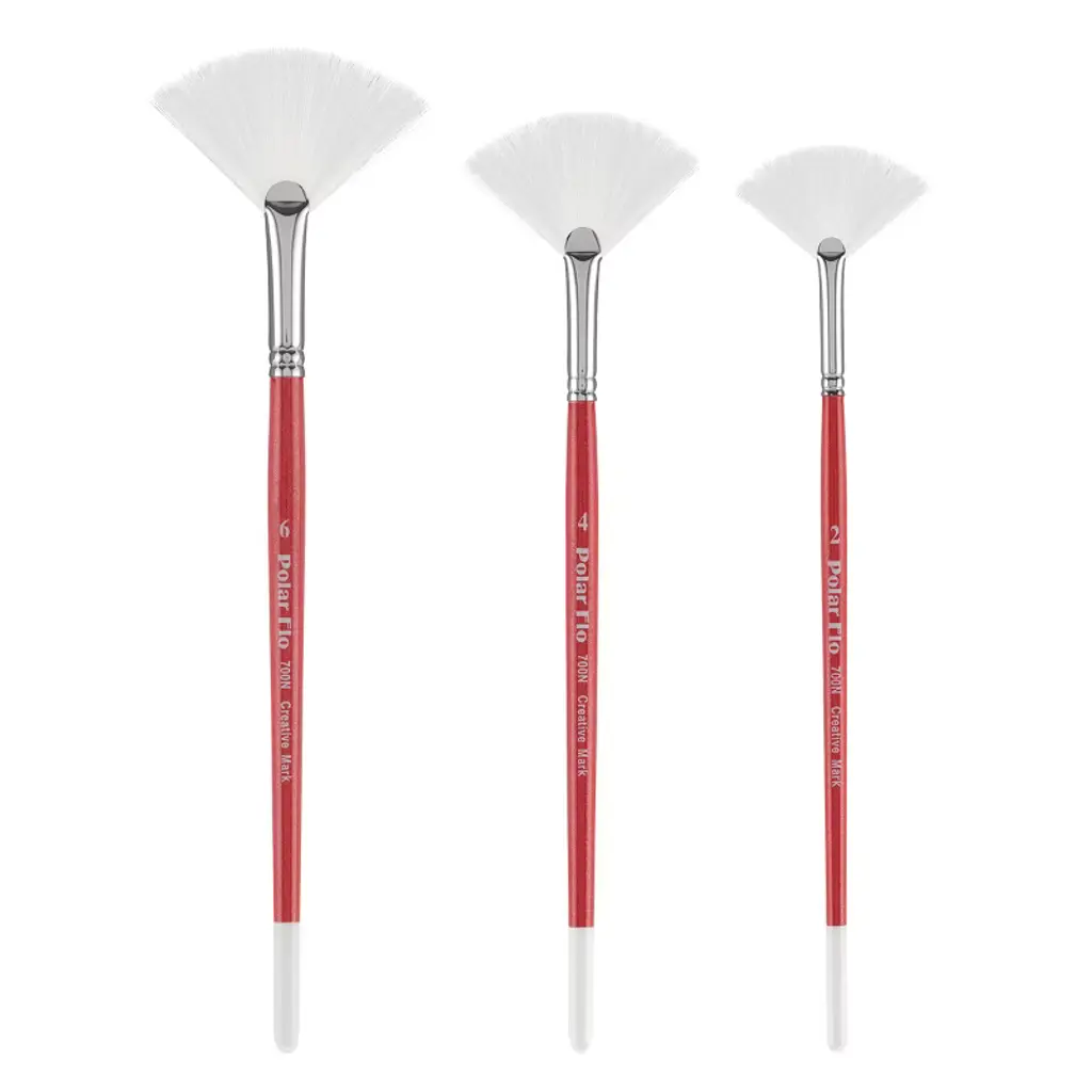 Creative Mark Polar Flo Professional Watercolor Brushes - Fan 4 - 3 Pack - Short Handle, Nickel-plated Seamless Brass Ferrule - Art Paint Brushes For