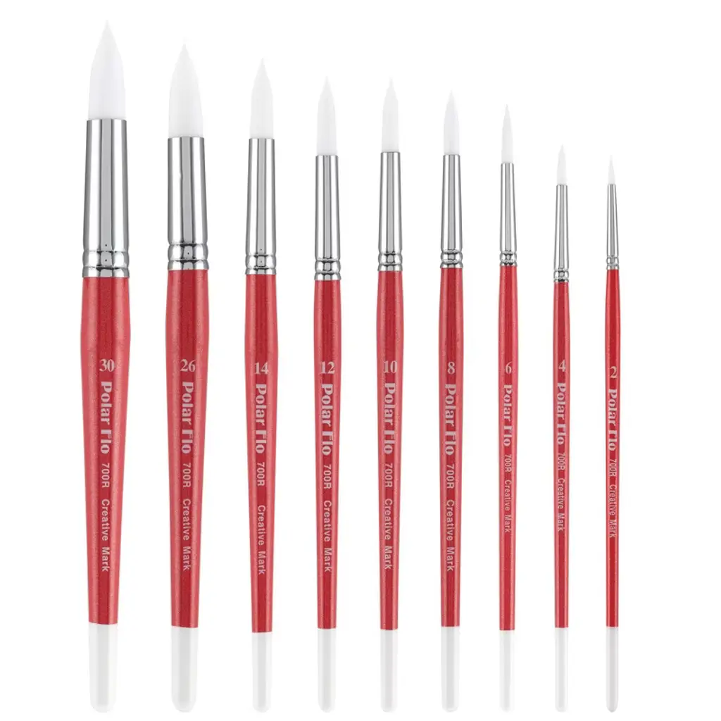 Introducing the Polar Flo Short Handle Watercolor Brushes by Creative Mark – the epitome of excellence for artists seeking precision and control in their artwork. Designed to meet the professional requirements of both novice and seasoned artists, this art paint brush set guarantees beautiful, crisp results every time. Crafted from superior white synthetic hair, the Polar Flo Watercolor Brushes are engineered to offer superb resilience and excellent shaping. Each brush features an extra full body that holds color impressively well, while the razor-sharp tapered edge provides extraordinary control over your strokes. Whether you are working with watercolor, gouache, inks, or other fluid media, these watercolor brushes are perfect for achieving fine details and smooth blending. The brushes feature nickel-plated seamless brass ferrules, which ensure durability and prevent any hair shedding. The responsive, full-bellied round brushes end in a perfect point, allowing for intricate detailing and dynamic line work. One of the standout features of this brush and the watercolor brush set is the scraper handle on the Aquarelles. This unique design element adds versatility to your artistic toolkit, enabling you to create interesting textures and effects with ease. The Polar Flo Watercolor Brushes are suitable for artists of all skill levels, from beginners to professionals. The Polar Flo line of paint brushes is ideal watercolor painting, but also for inks, fluid acrylics, and fluid media. The brushes' exceptional performance makes them a must-have for any serious artist's collection. Whether you are looking for acrylic paintbrushes, watercolor brushes, or an artist brush set that delivers consistent results, the Polar Flo Watercolor Brushes by Creative Mark are the ultimate choice. This paint brush set for acrylic painting is not only a valuable addition to your art supplies but also a testament to your commitment to producing top-tier artwork.