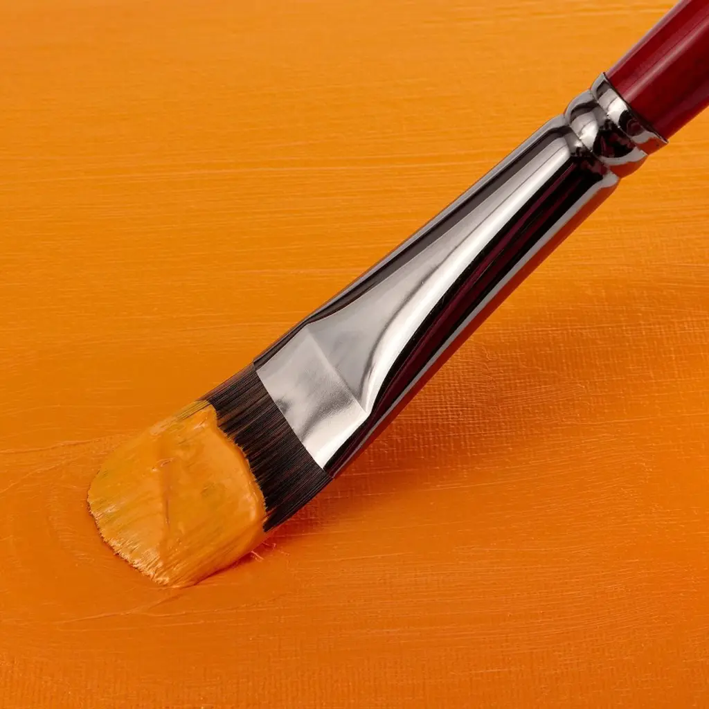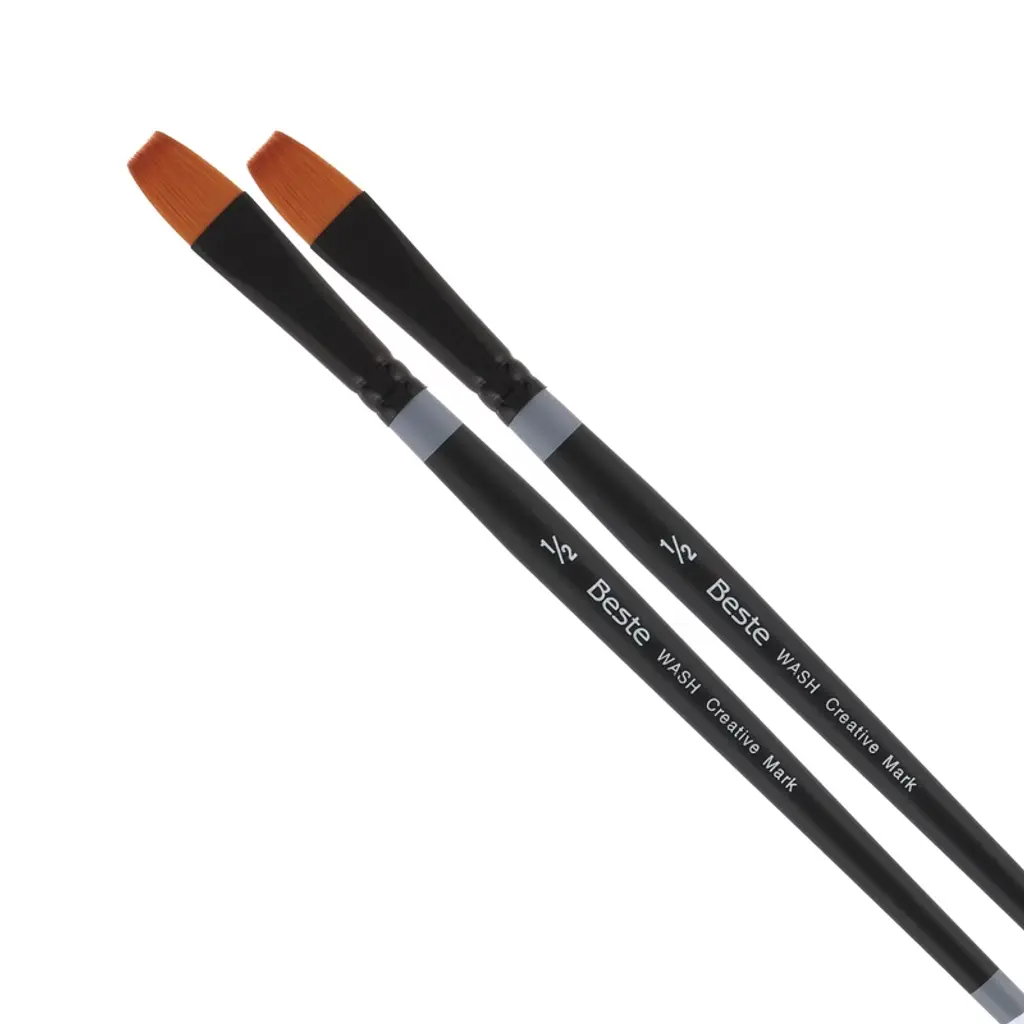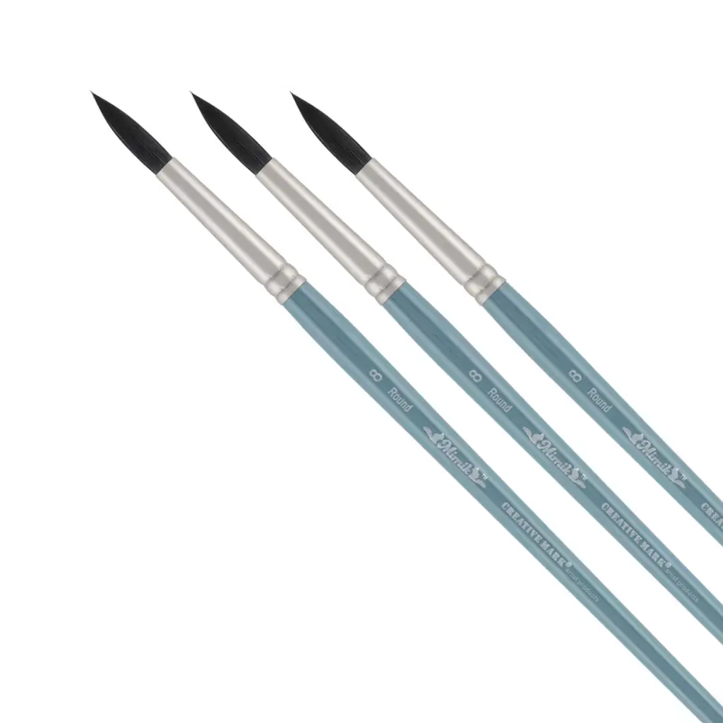 Creative Mark Staccato brushes are truly special artists' tools that are made with a proprietary blend of fine and thick synthetic hair. The thick hair creates a stiff feel, while the thin hair Allows for controlling even the thinnest of fluids. Making these brushes Perfect For everything from heavy body acrylics and stiff gels to thinned glazes and acrylic inks. Staccato provides a whole new level of performance while creating. The full bodied hair of the brush comes to a tapered edge or fine springy point. Enabling you to work either fast or slow, depending on your Application. It's super bounce back Quality provides masterful and easy repetitive strokes. These brushes have long, lacquered cherry Wood handles, black dipped ends and seamless nickel plated brass, gun metal toned ferrules. These brushes are as beautiful as they are skilled and are sure to be one of your favorite brushes.
