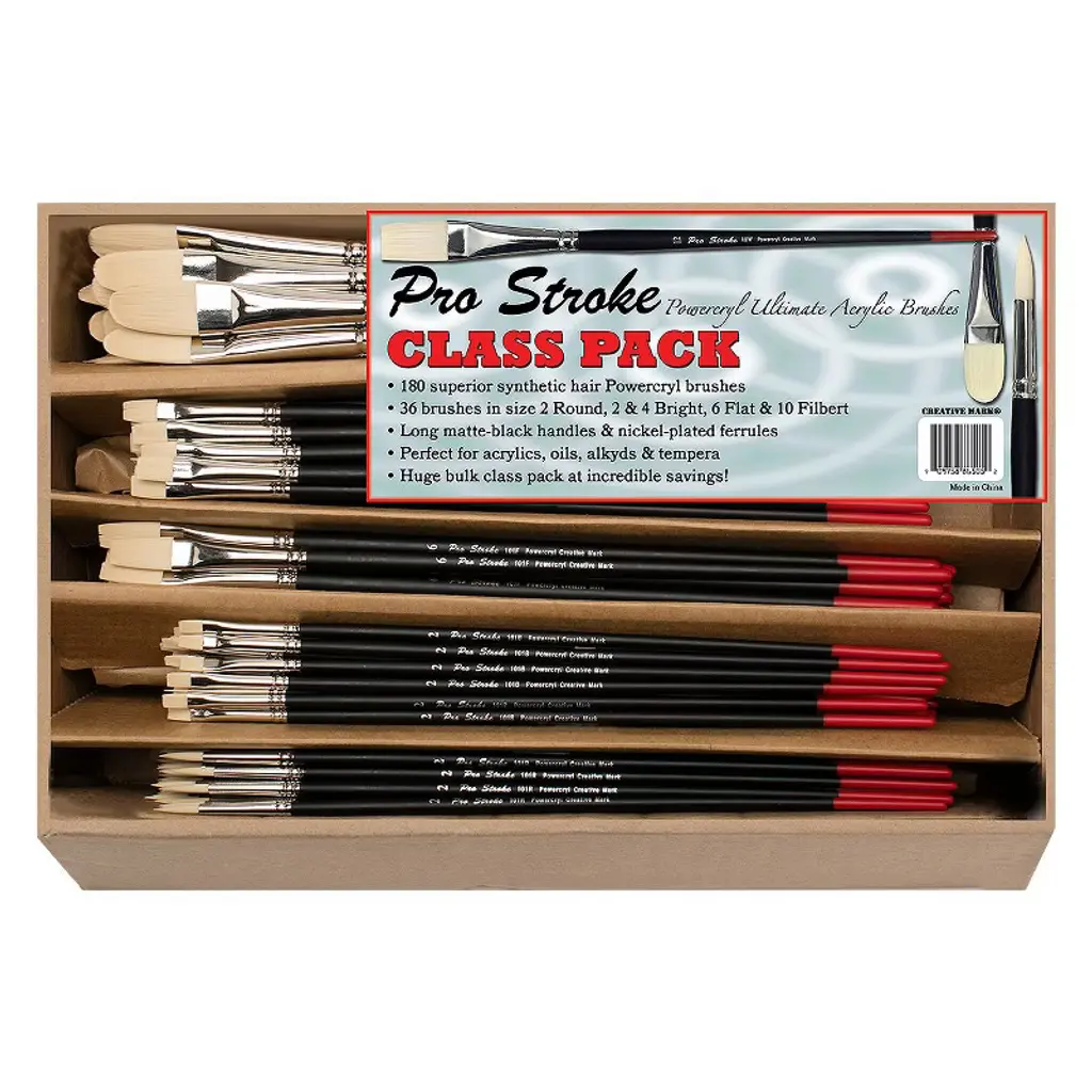 Creative Mark Staccato Artist Paintbrush - Assorted Shapes And Sizes - Bulk Pack Of 72 - Synthetic Long Handled Brushes For Acrylic Paints, Handmade