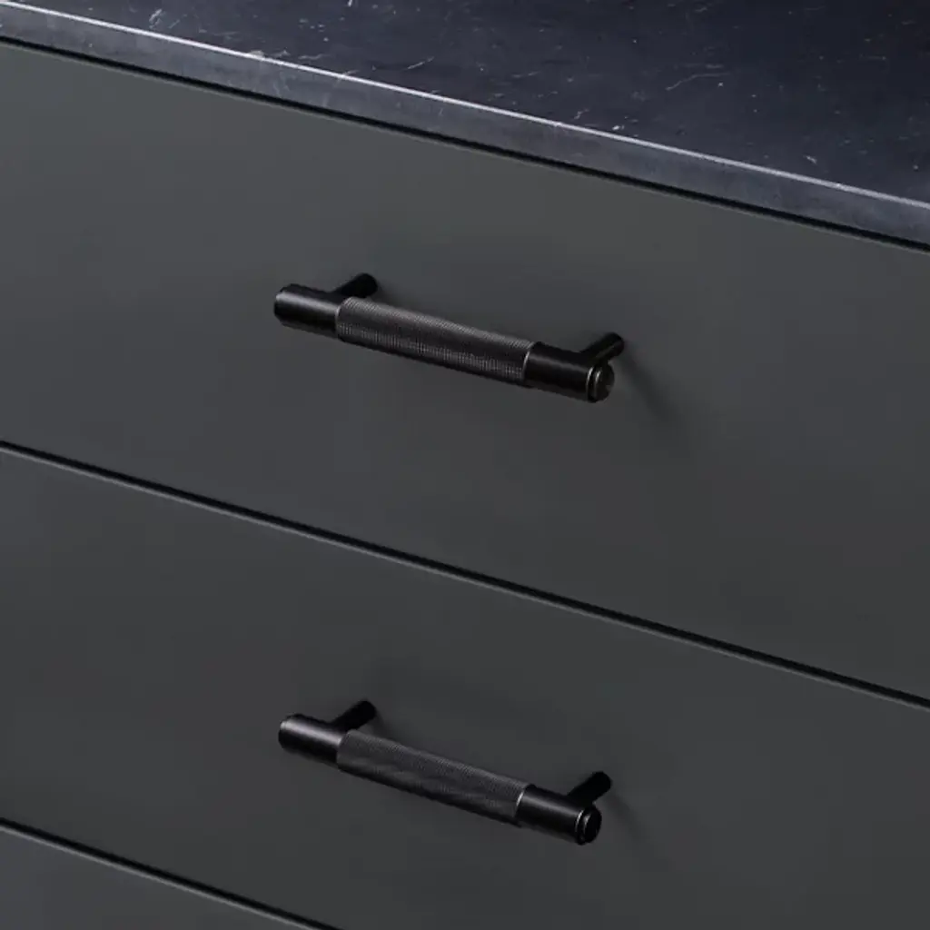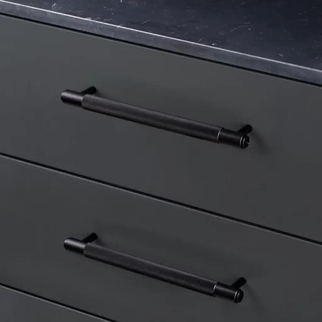 Give elegant actuation and lasting appeal to inside cabinet doors and drawers with the Cross Pull Bar from Buster + Punch. Fashioned from solid metal, it extends from two slim stems, holding a horizontal crossbar between them. The bar’s smooth sides contrast well with the central textured section, enriched with a B+P signature diamond-cut cross-knurled pattern that adds grip and intricate texture to its surroundings, while hand-finishing adds a vibrant touch of individual character.