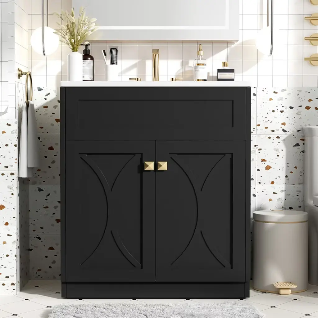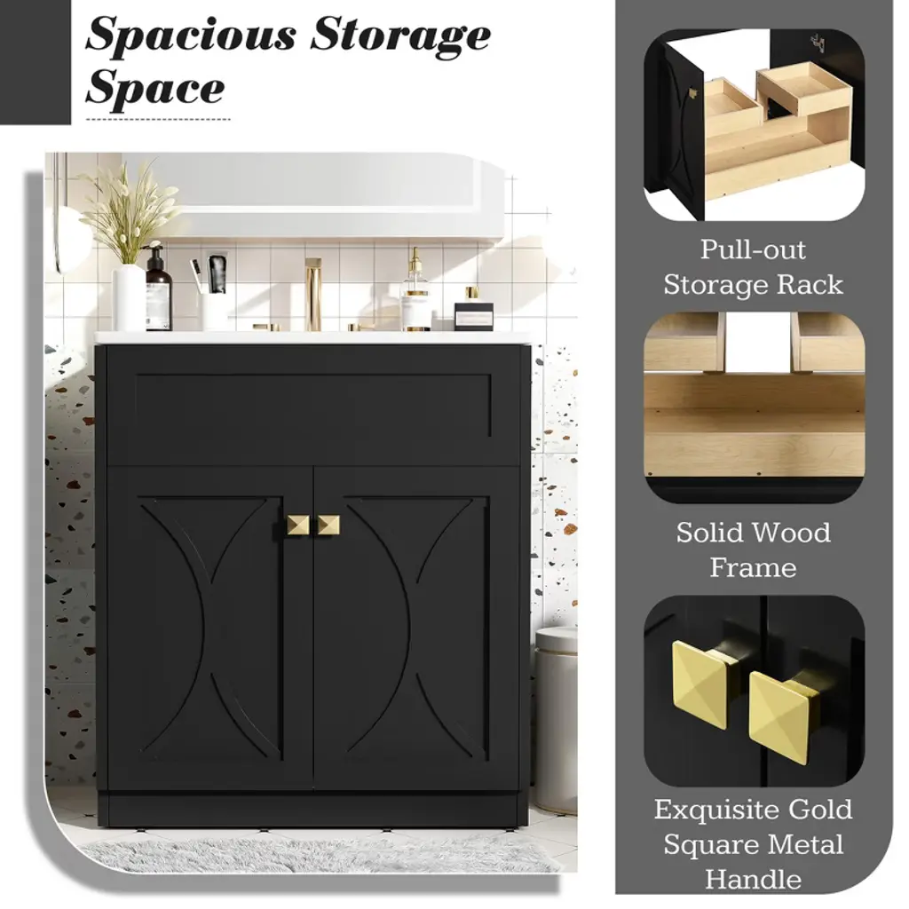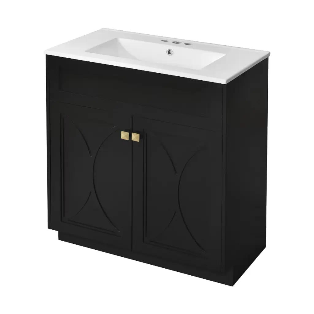 Csbdhome 30" Bathroom Vanity With Sink – Modern Freestanding Cabinet With Ceramic Top, Soft Close Doors, Gold Handles