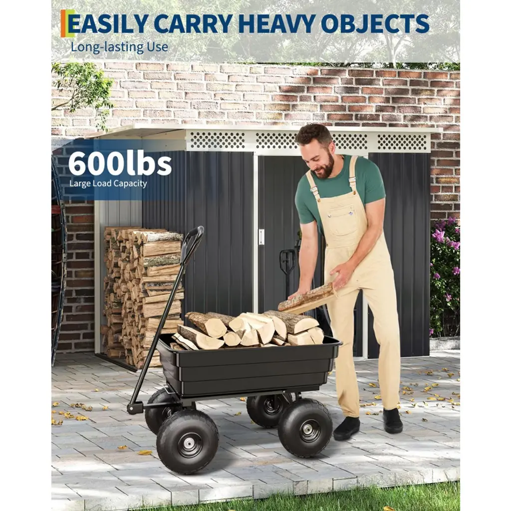 Cuisinsmart Poly Dump Cart, 4 Cu.ft. Heavy Duty 600 Lbs Garden Cart, 10" No-flat Tires & 180° Rotating Handle, For Yard, Landscaping, Black