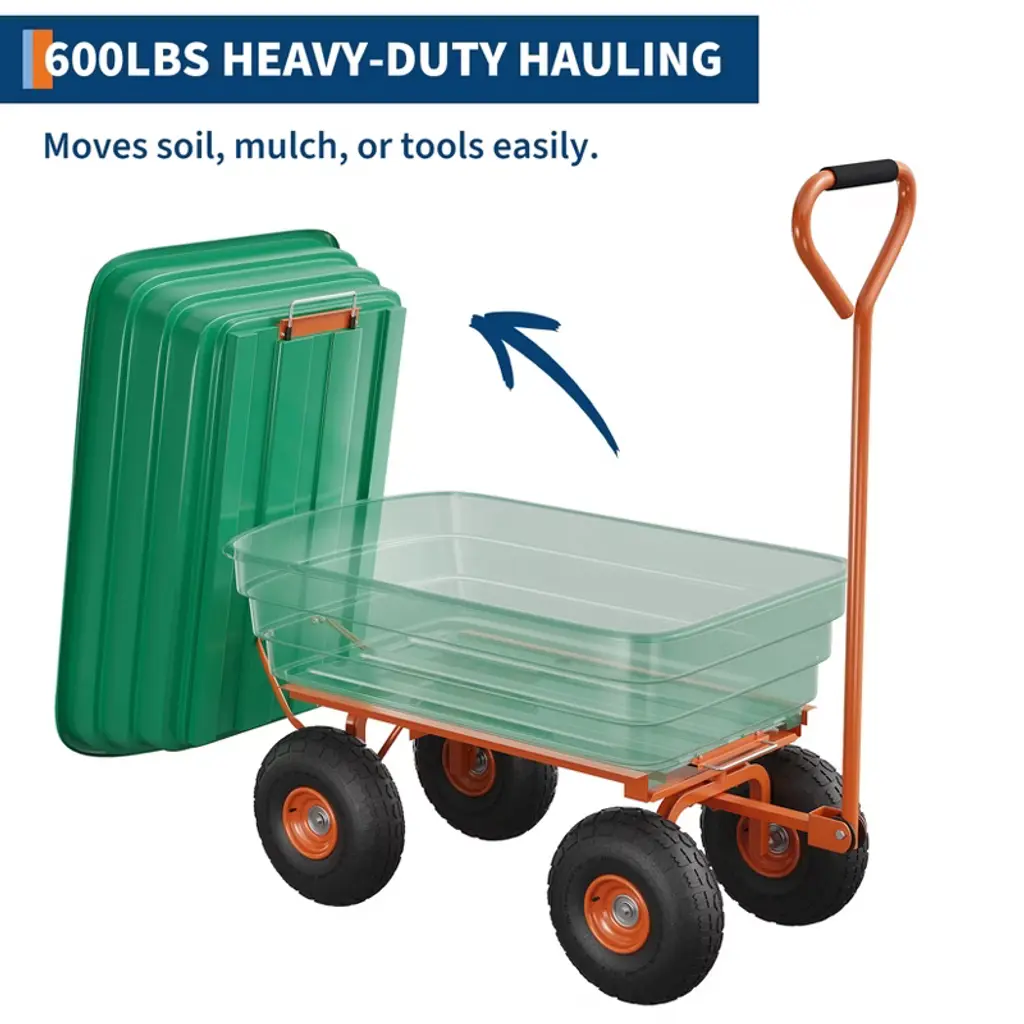 Cuisinsmart Poly Dump Cart, 4 Cu.ft. Heavy Duty 600 Lbs Garden Cart, 10" No-flat Tires & 180° Rotating Handle, For Yard, Landscaping, Green+orange