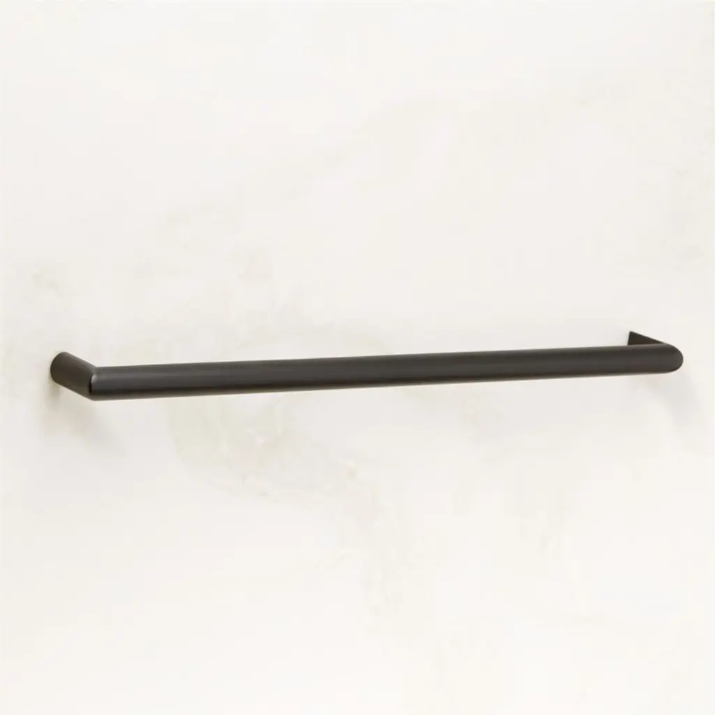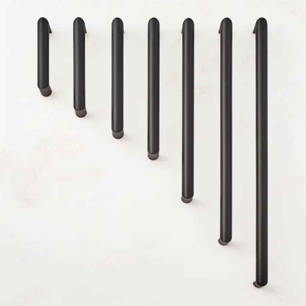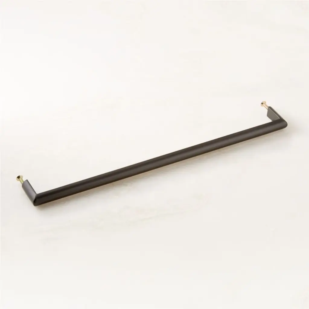 Crafted of solid brass, curved black cabinet handle by Barcelona-based Mermelada Estudio evokes a modern sensibility. Pair with the Curveaux knob for a cohesive look. CB2 exclusive.