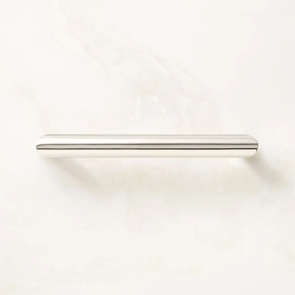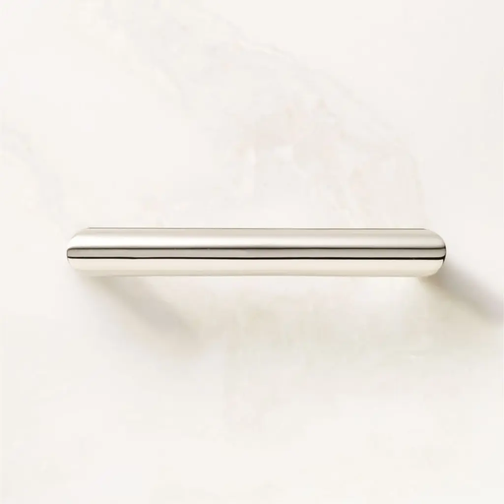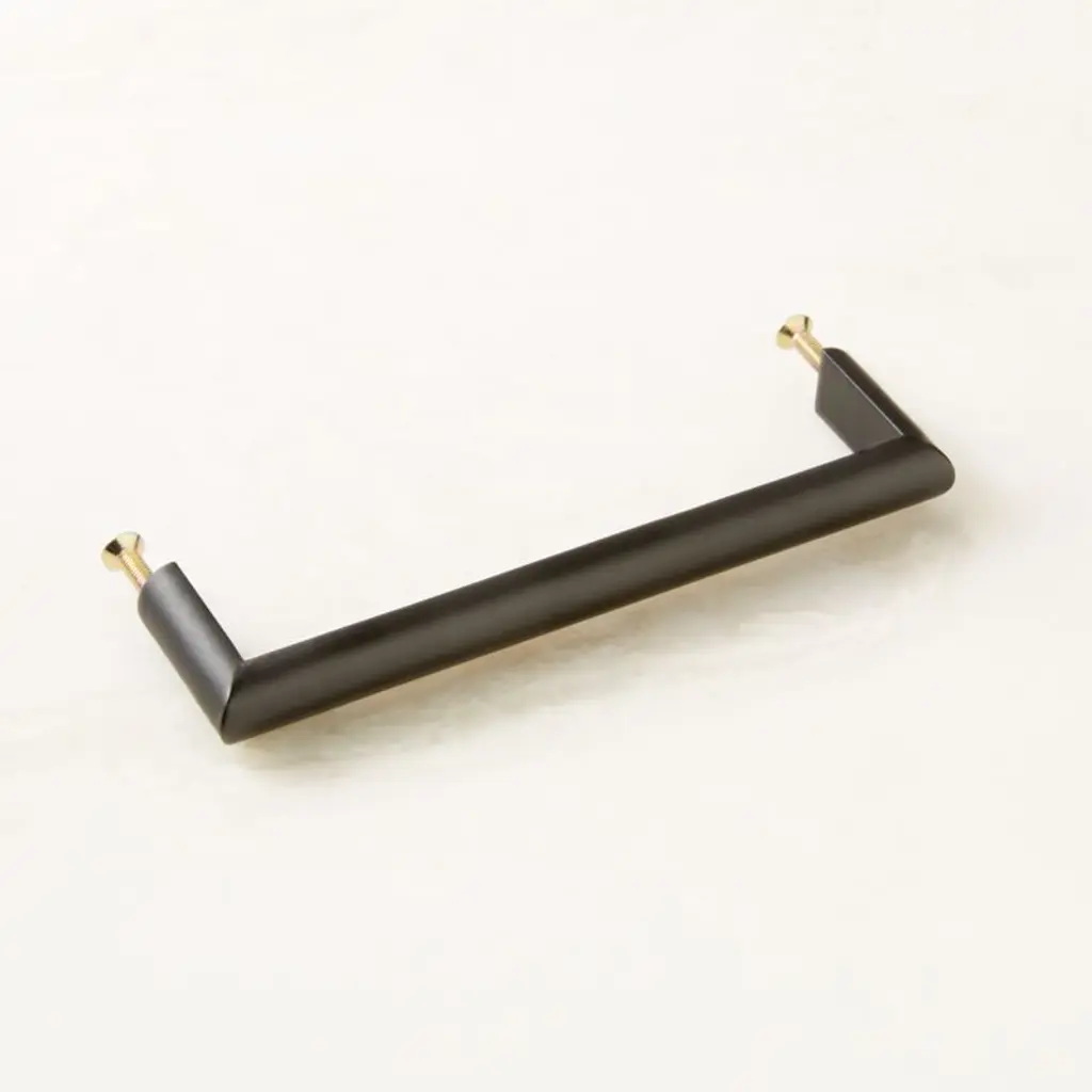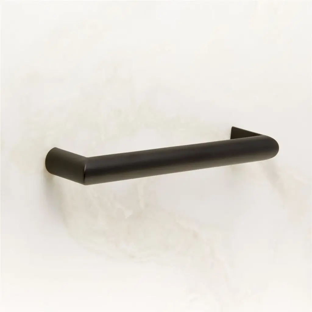 Crafted of solid brass, curved black cabinet handle by Barcelona-based Mermelada Estudio evokes a modern sensibility. Pair with the Curveaux knob for a cohesive look. CB2 exclusive.