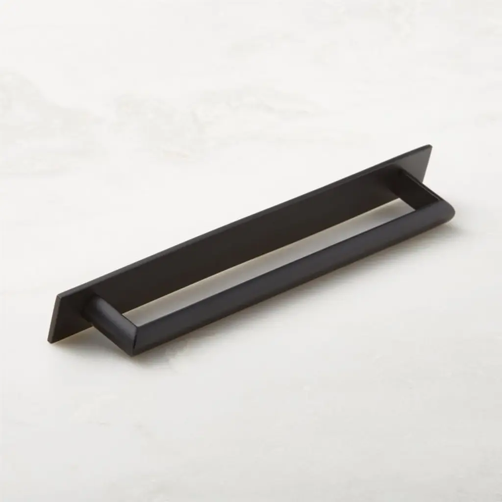Curveaux Curved Black Cabinet Handle With Backplate 8"