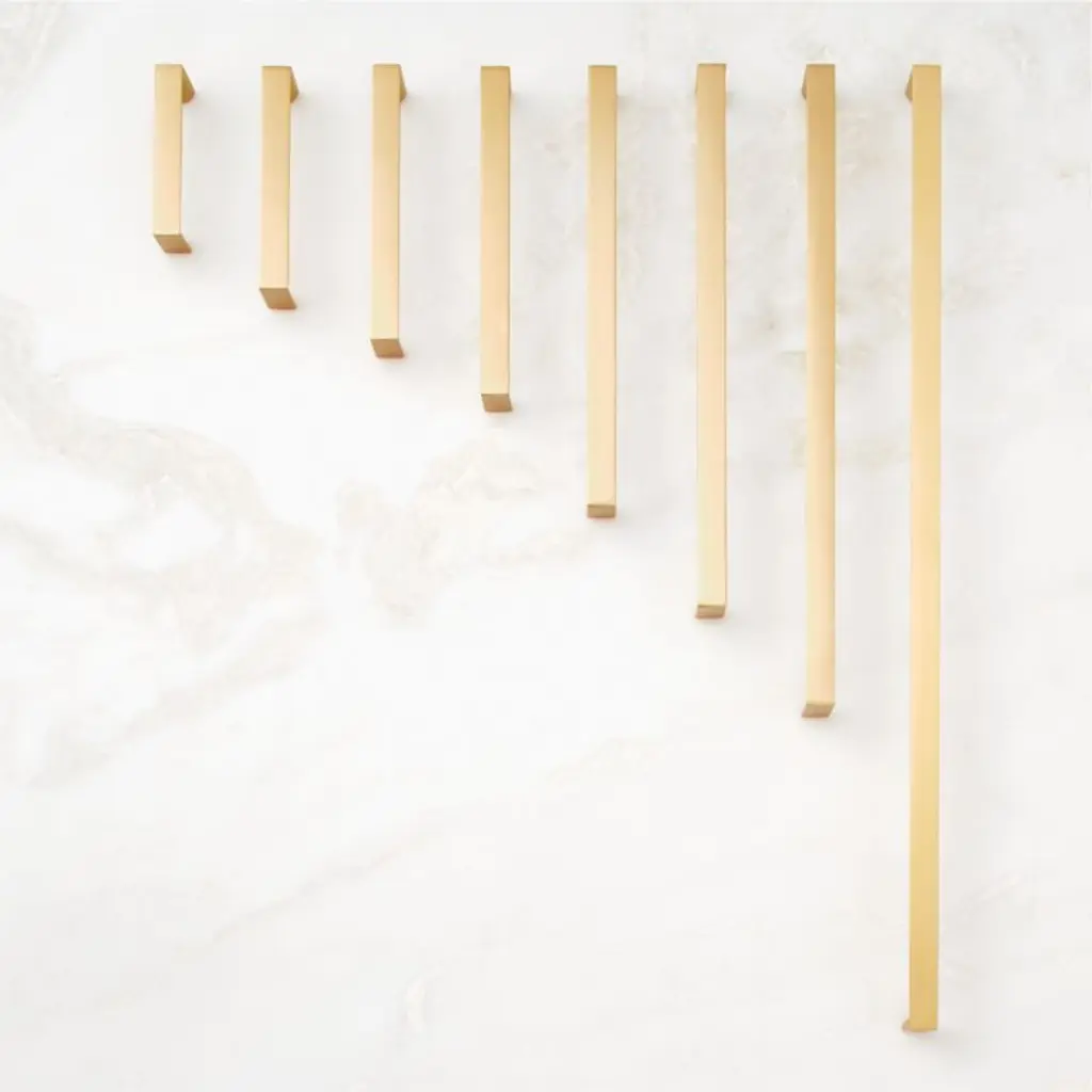 Brushed brass handle by Barcelona-based Mermelada Estudio sports sleek lines and subtle curved design details crafted of solid brass. Pair with the Damon knobs for an upscale look. CB2 exclusive.
