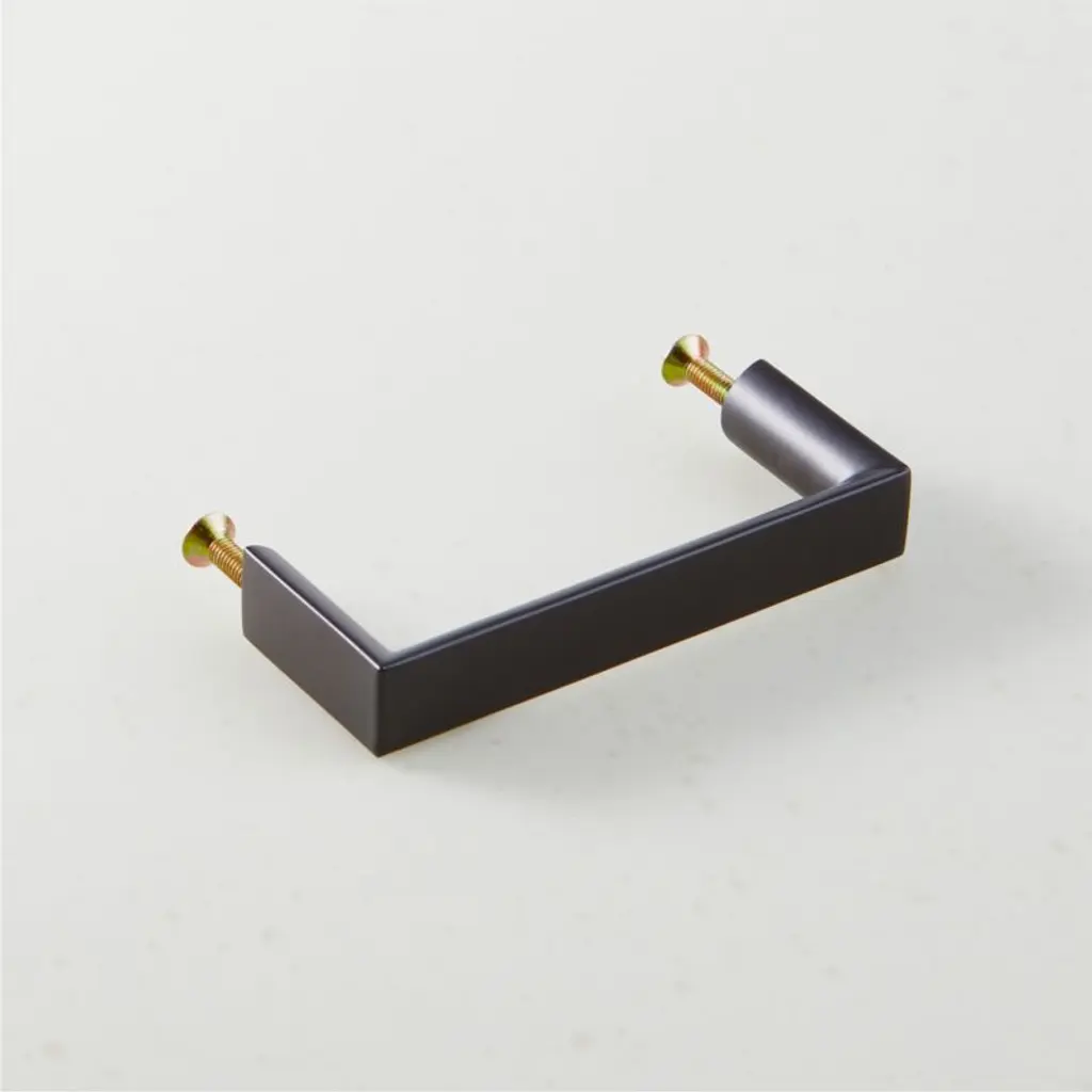 Black handle by Barcelona-based Mermelada Estudio sports sleek lines and subtle curved design details crafted of solid brass. Pair with the Damon knobs for an upscale look. CB2 exclusive.
