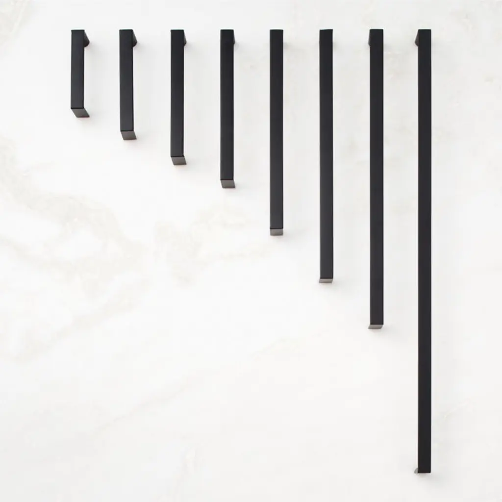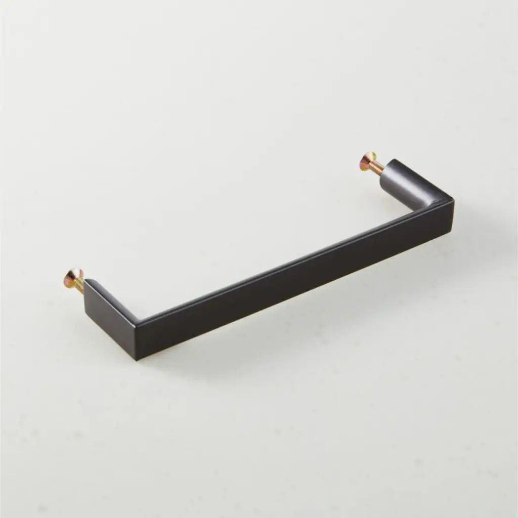 Black handle by Barcelona-based Mermelada Estudio sports sleek lines and subtle curved design details crafted of solid brass. Pair with the Damon knobs for an upscale look. CB2 exclusive.