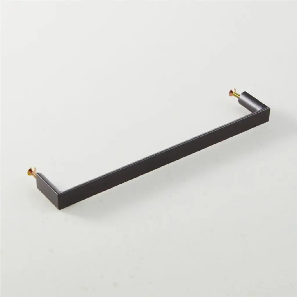 Black handle by Barcelona-based Mermelada Estudio sports sleek lines and subtle curved design details crafted of solid brass. Pair with the Damon knobs for an upscale look. CB2 exclusive.