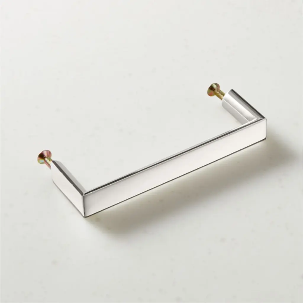 Cabinet handle by Barcelona-based Mermelada Estudio sports sleek lines and subtle curved design details, crafted of solid brass in a polished nickel finish that elevates any space. Learn about Mermelada Estudio on our blog. CB2 exclusive.