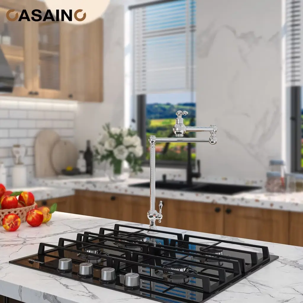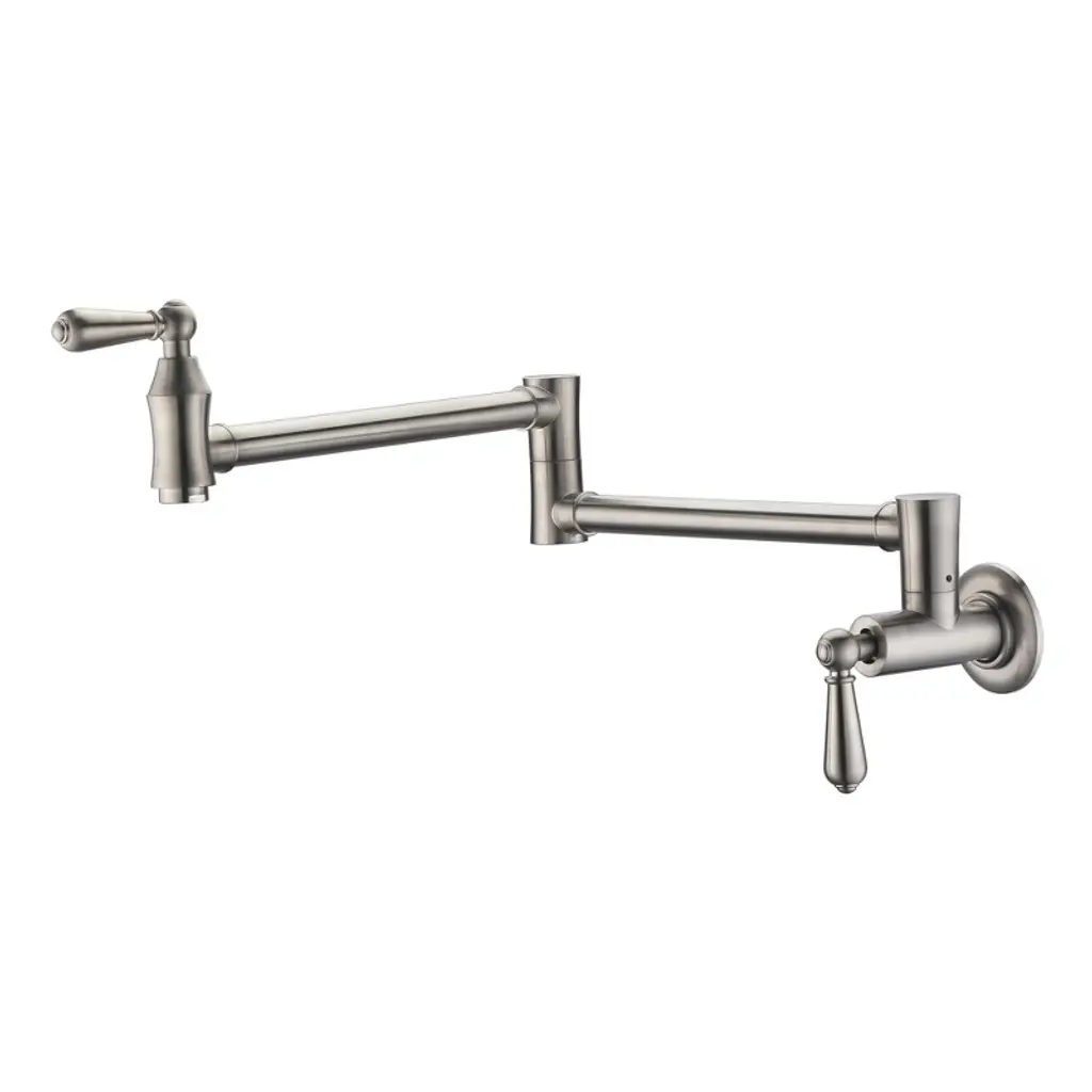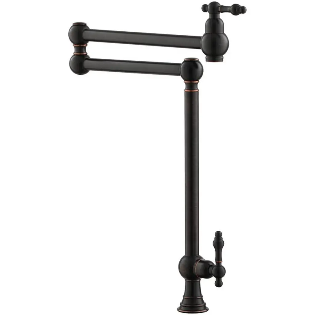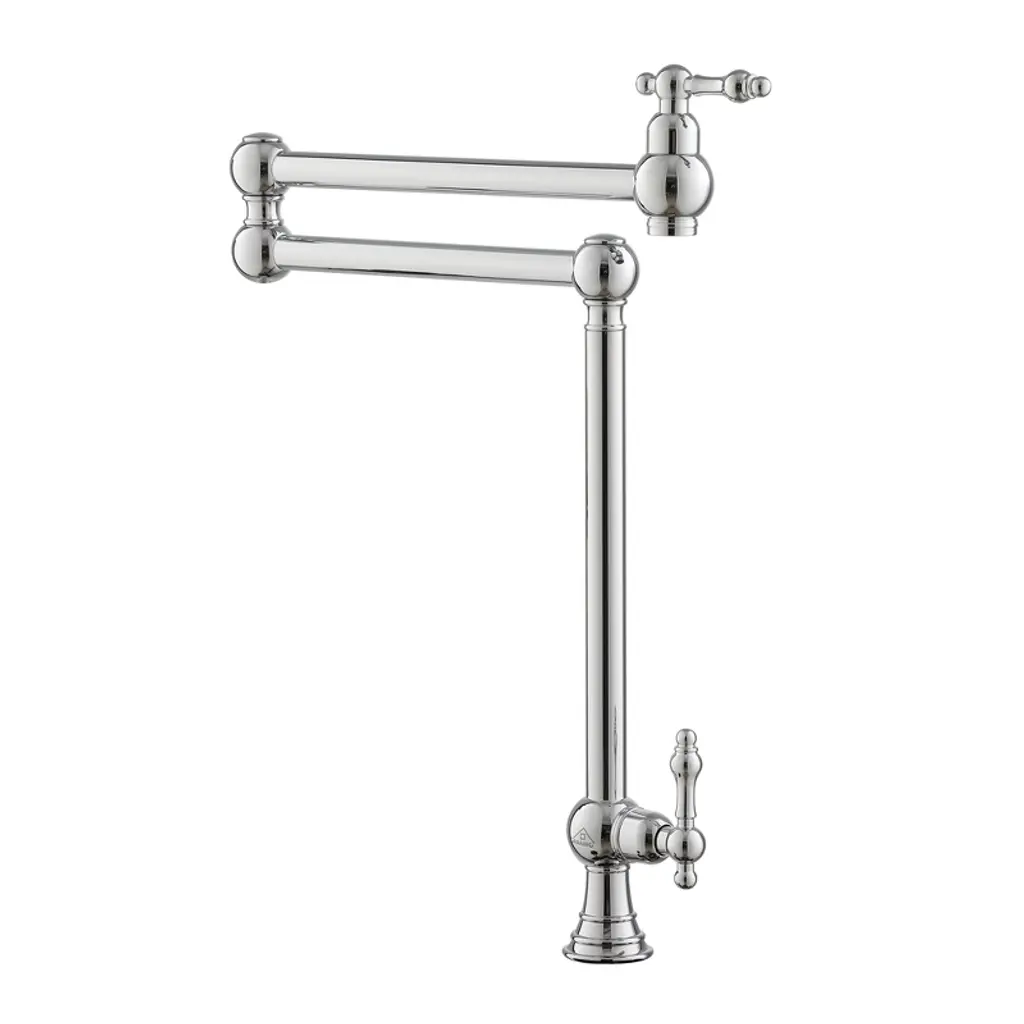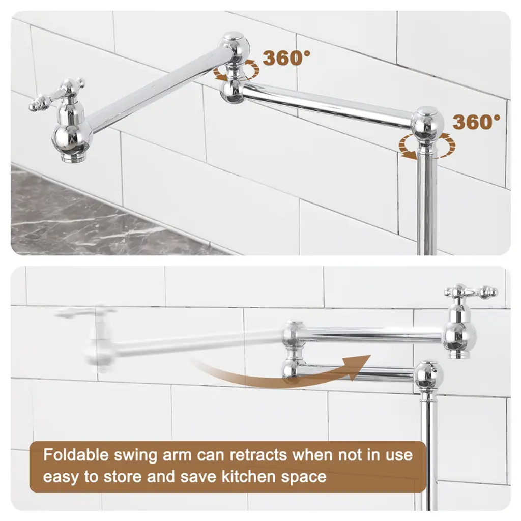 Reimagine the look of your kitchen by adding a classic, industrial look with this kitchen faucet. This pot filler faucet brings professional convenience to home cooks. With a double-switch water control, the swing spout can wash at multiple angles for more flexible use. The faucet also can fold away when not in use, allowing you to save space.