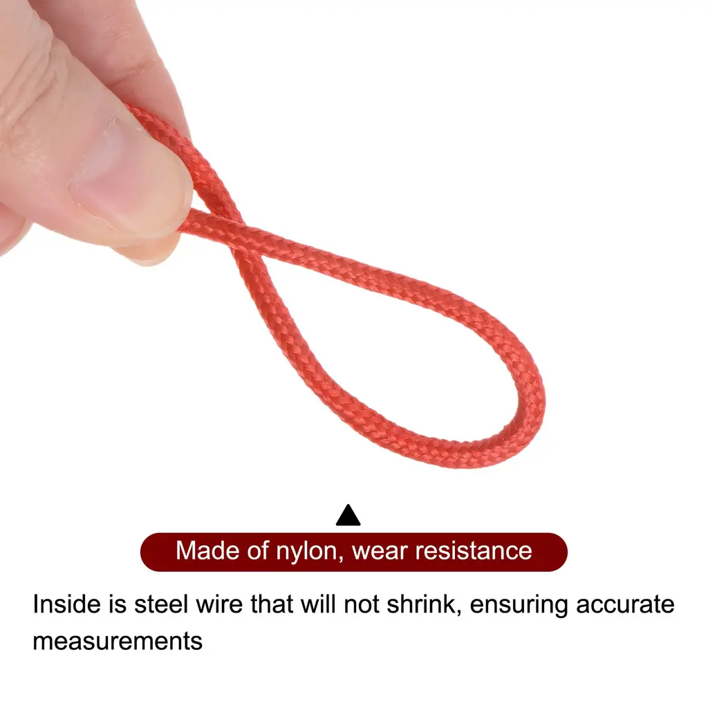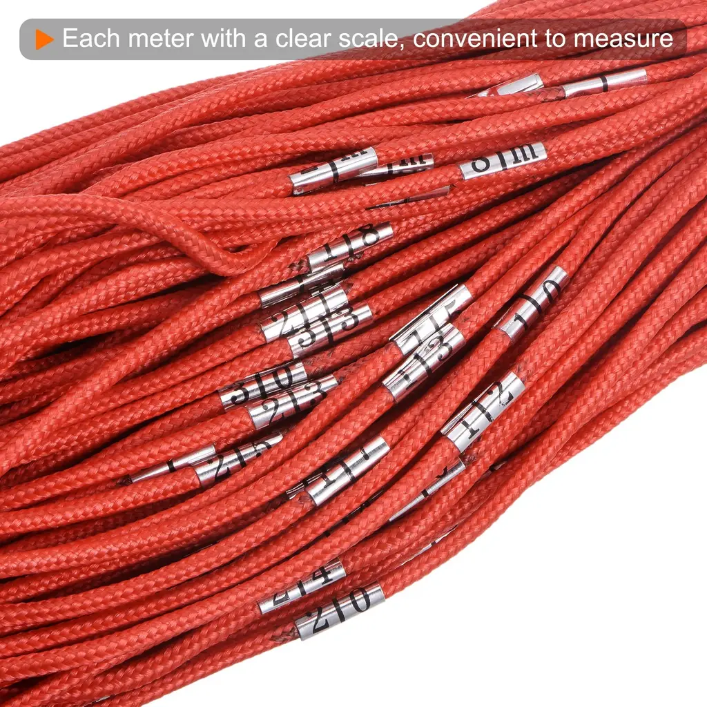 Size - Length: 100m / 328ft / 3837inch. Diameter: 3mm / 0.12". Thick enough not to break easily.Material - The outside of the measuring rope is made of sturdy nylon, which is wear resistant. The inside is steel wire, will not shrink after long-term use, ensuring accurate measurement.Feature - Each meter of the construction nylon rope has a clear scale embedded in the steel sheet, which is not easy to fade and convenient to measure. In addition, the rope also with labor saving pull ring handle, adopts non-slip design, ergonomic and is comfortable to grip.Application - Deep well nylon rope is suitable for long-distance measurement of roads, railways, engineering construction projects, etc. It can also be used for farmland measurement, power engineering, etc.Package Content - 1pcs x red scale measuring rope. Bright colors and easy to identify during construction, beautiful and practical.The outside of the measuring rope is made of sturdy nylon, which is wear resistant. The inside is steel wire, will not shrink after long-term use, ensuring accurate measurement.Each meter of the construction nylon rope has a clear scale embedded in the steel sheet, which is not easy to fade and convenient to measure. In addition, the rope also with labor saving pull ring handle, adopts non-slip design, ergonomic and is comfortable to grip.Deep well nylon rope is suitable for long-distance measurement of roads, railways, engineering construction projects, etc. It can also be used for farmland measurement, power engineering, etc.