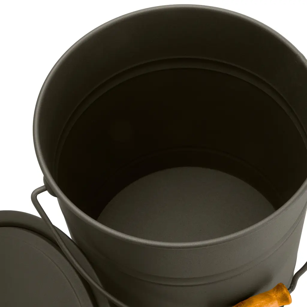 Constructed of 28 gauge galvanized sheet iron, this deluxe, double-bottomed ash bucket holds three gallons of warm ash safely and securely, with a tight-fitting, lightweight powder-coated iron/steel lid. A double-layer steel bottom offers additional protection for floors, and a handle with wooden grip protects hands while hauling.Attractive, functional design makes the task of ash storage and hearth cleaning easier. Large 3-gallon capacity is perfect for large fireplaces or wood stoves.