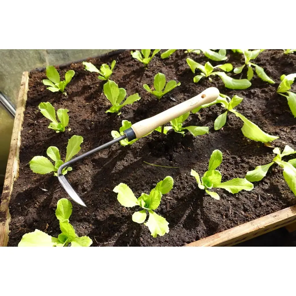 Easily tackle weeds without disturbing your garden's mulch with this efficient weed-slicing tool. Perfect for seniors or anyone working in raised beds, its long handles provide added comfort and reach.