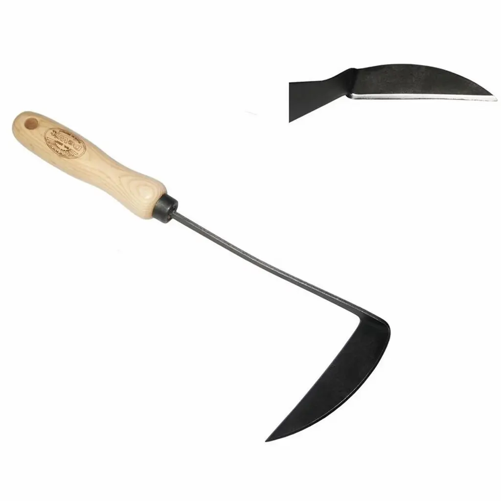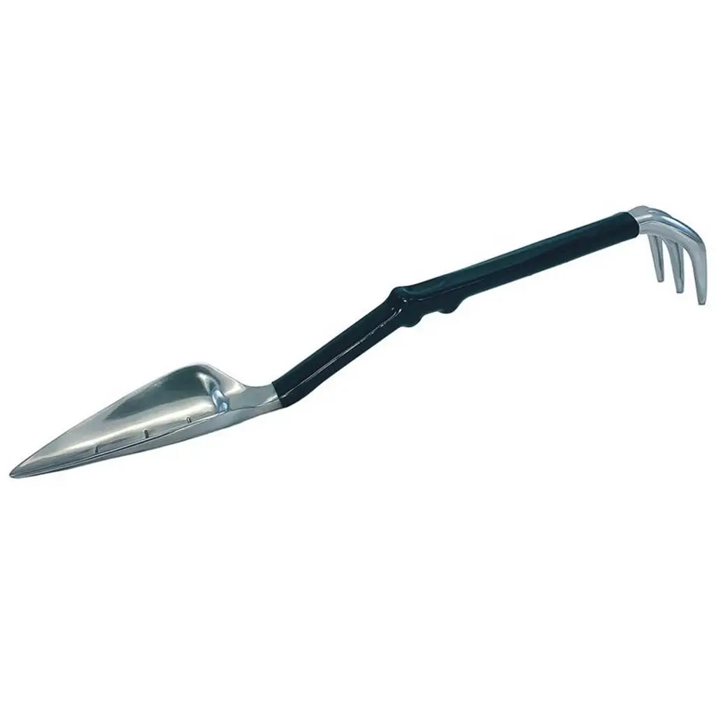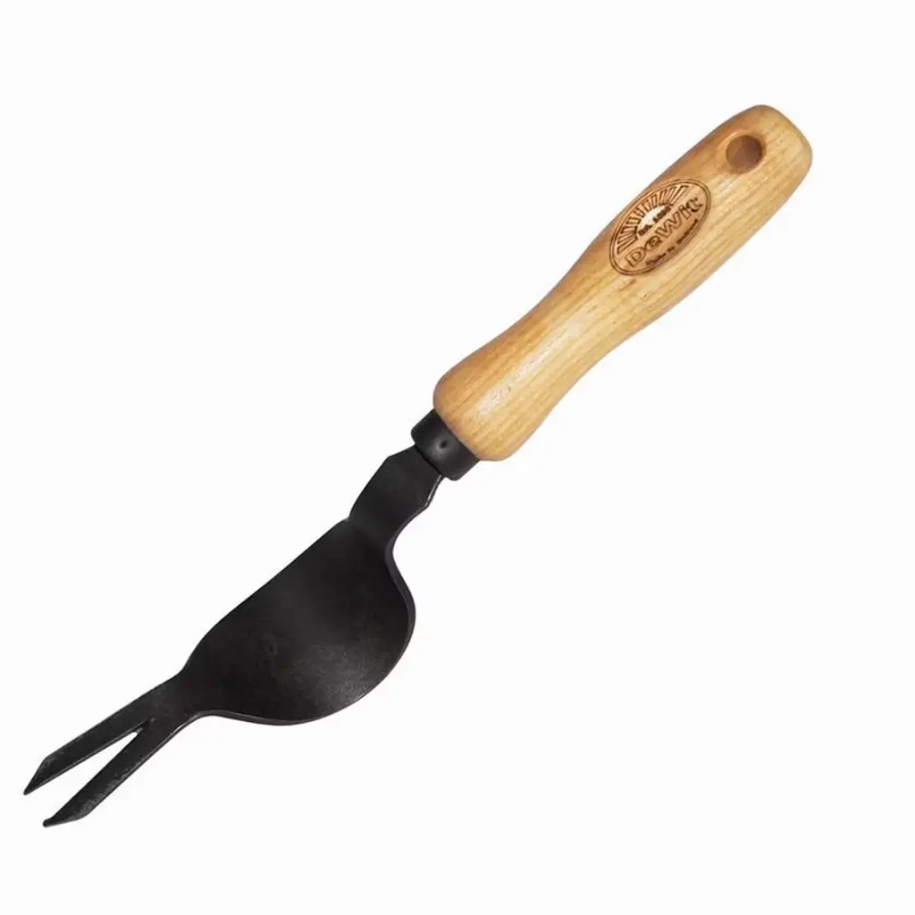 The DeWit Tulip Spade is a versatile gardening tool designed to work like a trowel while breaking up soil like a fork. Featuring a unique three-pointed, sharpened blade, this spade is perfect for tackling tough clay soil and cutting through roots with ease. The curved blade allows for efficient scooping, making it a must-have for any gardener. Crafted from heat-treated, hardened boron steel, this tool is built to last. The long T-handle provides extra leverage, reducing strain while digging and planting.