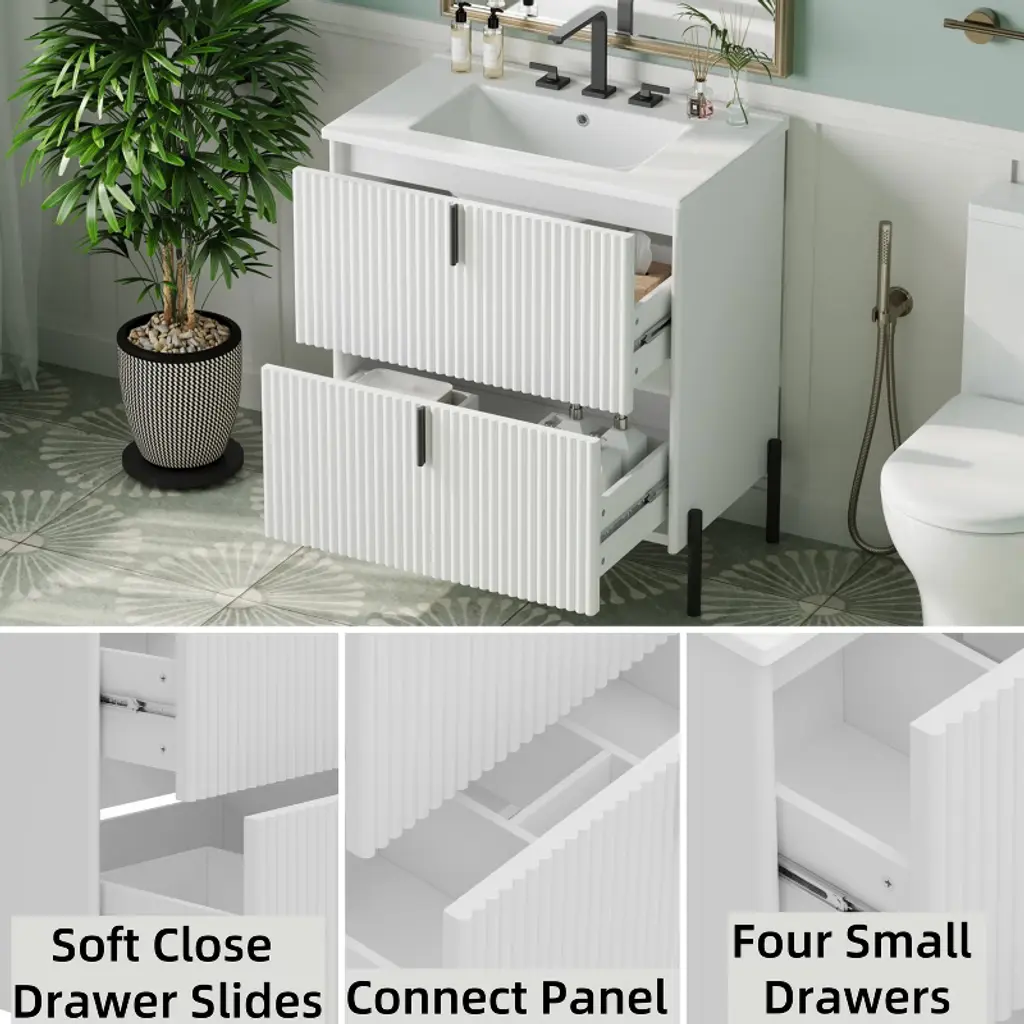 Dexmalle White 30" Bathroom Vanity With Vertical Pulls And Full-extension Drawers
