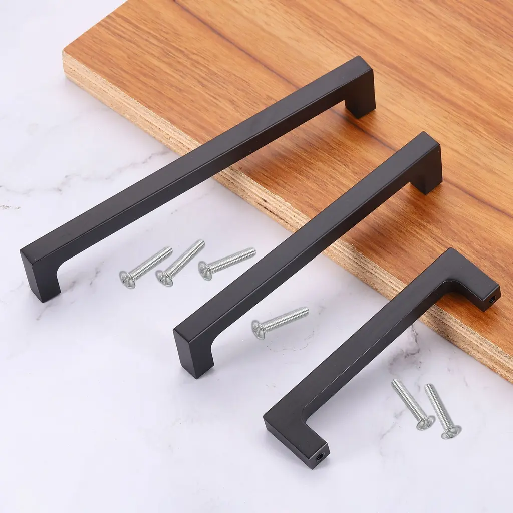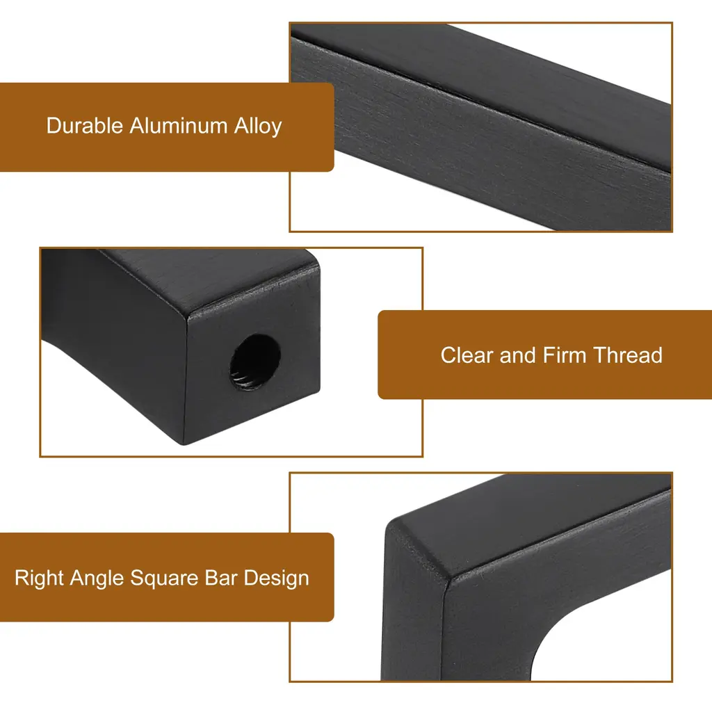 Drawer Pulls, 5" - Aluminum Alloy Square Bar Solid Cabinet Handles - Black-3Pcs - 6"