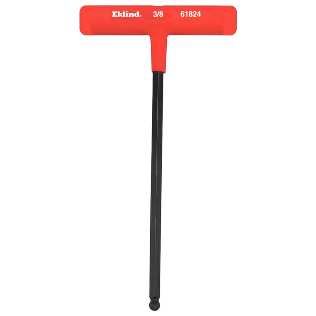 The Eklind 3/8-inch Cushion Grip Hex T-Handle T-Key Allen wrench meets the most stringent requirements of professional mechanics, tradespeople, DIY enthusiasts, and hobbyists. It features a one-piece loop handle and heat-treated construction for enhanced strength and durability, with a corrosion-resistant black oxide finish. The 6-inch arm provides excellent reach, while the cushioned 3-inch handle ensures a secure and comfortable grip, making it ideal for frequent and demanding use.
