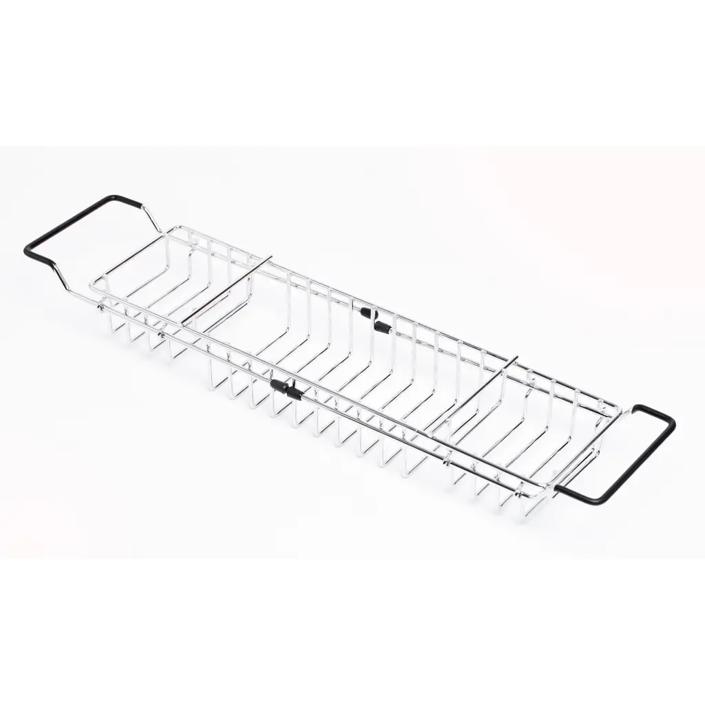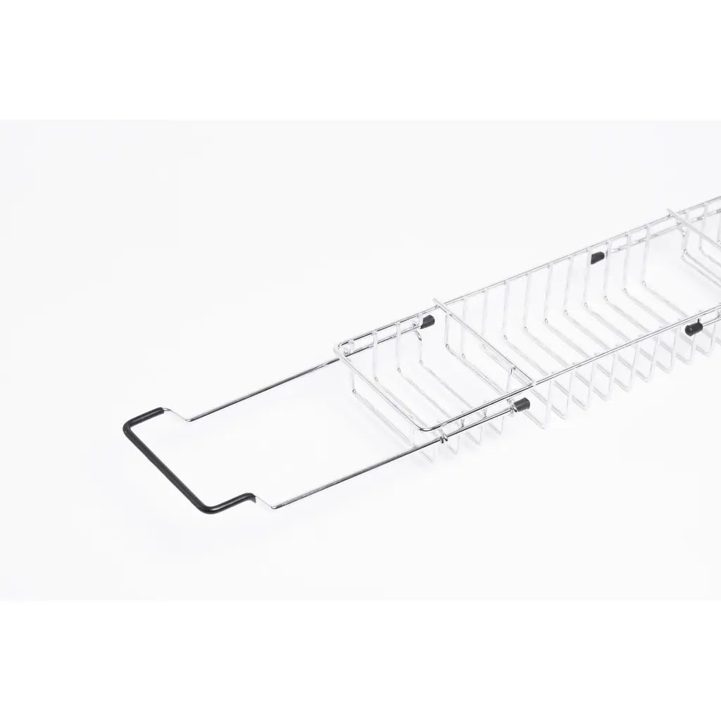 Time to unwind with this extendable bathtub caddy that brings bathroom essentials and relaxation together. Durable wire metal composition and chrome plating creates a durable coating to prevent from rusting so that it works well in wet places. Extendable feature holds caddy onto bathtub to keep bathroom and spa essentials handy. Bring on the balms, candles, and bubbles!