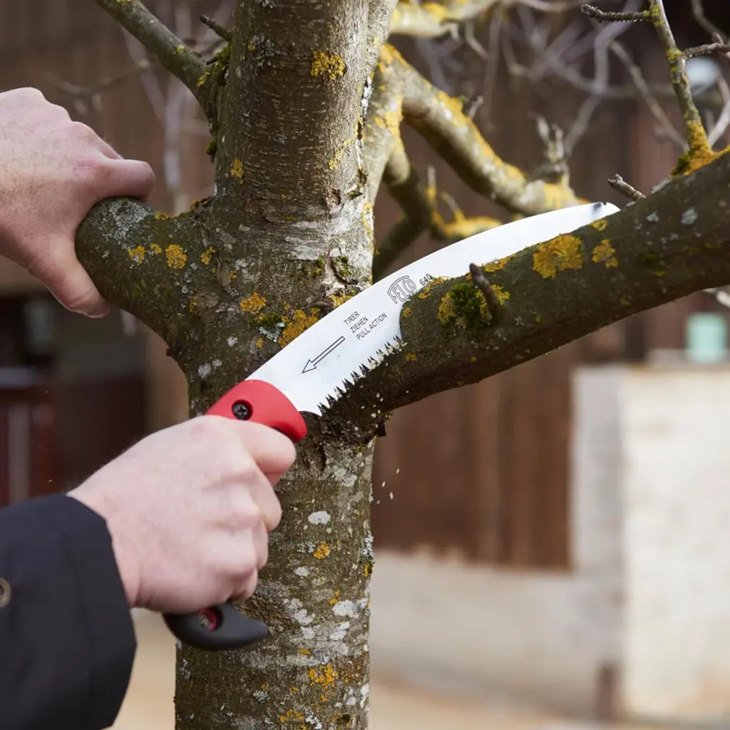 The FELCO 640 curved pull-stroke saw delivers serious cutting efficiency. Fast, stable and safe; with comfort in use and a light feel that almost seems to conflict with the cutting power provided by the innovative blade shape. Sawdust is removed as quickly as you can cut for branches up to 10cm / 3.9 inches. The result is pruning that leaves branches clean and smooth, and you satisfied of a job well done.