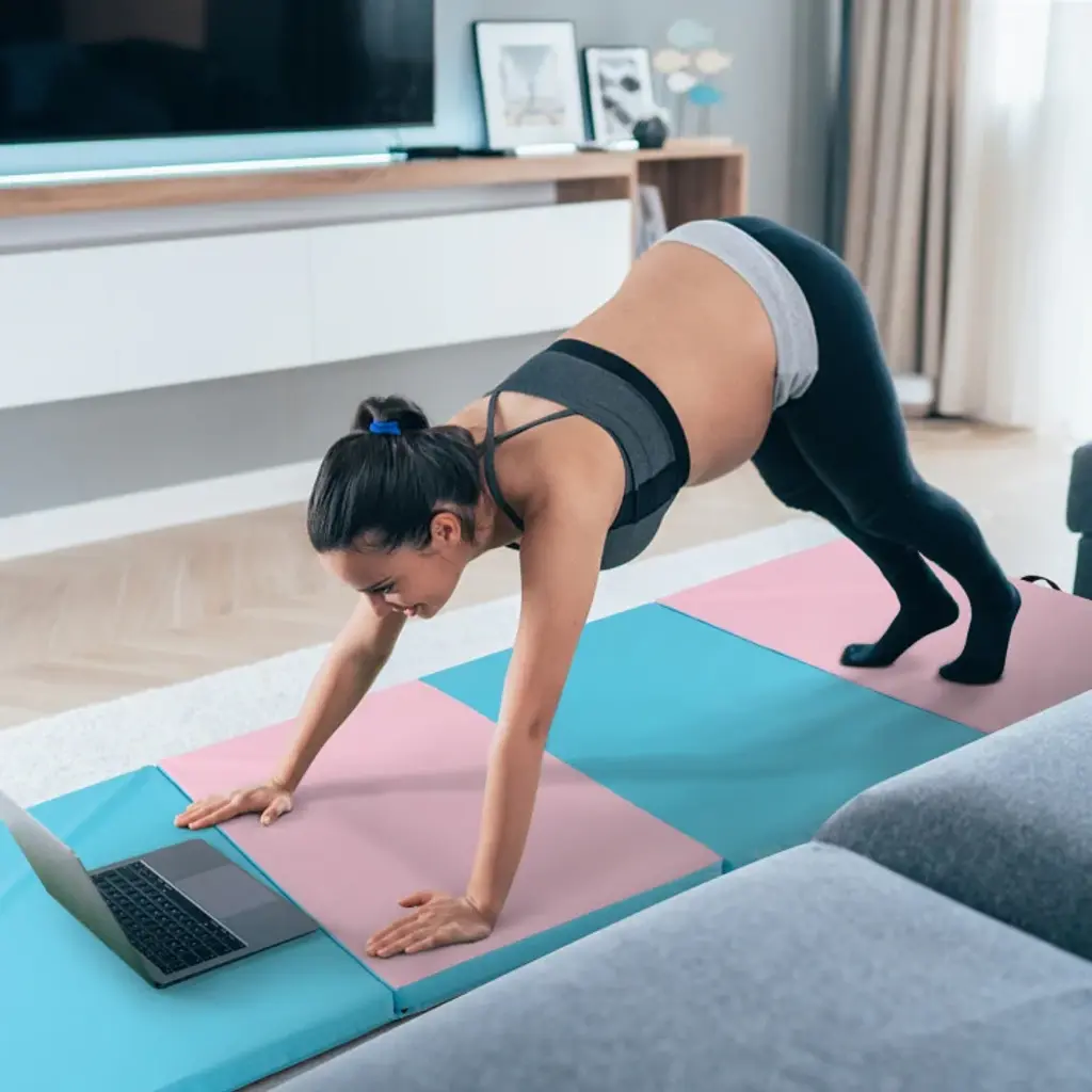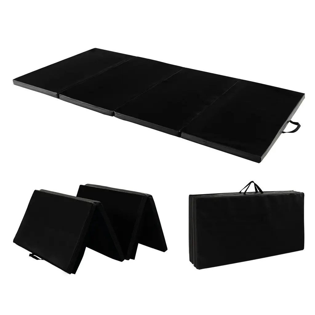 Folding Gymnastics Mat With Carry Handles And Sweatproof Detachable Pu Leather Cover - 8' X 4' X 2" - Purple