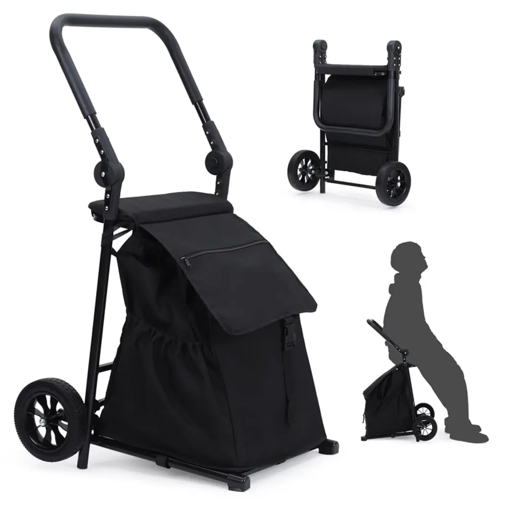 Folding Stair Climbing Shopping Cart With Removable Bag And Handle - 19"x 15" X 41" - Grey