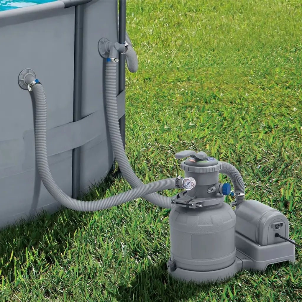 Keep your backyard pool fresh and clean with the Funsicle 12-Inch Sand Filter Pump. Rest assured, your pool will be sparkling all season, so say goodbye to manual pool cleaning! This efficient filter system utilizes all-natural sand to provide premium filtration for your family pool and features a flow rate of 1,600 gallons per hour. The filter sand only needs to be replaced every 5 years, making it a low-maintenance option for pool filtration. Additionally, the convenient 6-function handle includes backwash, rinse, filter, drain, recirculate, and closed position for all your needs. This filter pump can be used with any above-ground pools with outlet and inlet openings, is compatible with all Funsicle Oasis or Activity Pools, and fits all pumps with a 1.5-inch hose fitting, offering optimal versatility for an array of pools. Both economical and environmentally friendly, this 12-Inch Sand Filter Pool Pump will keep you swimming in pristine, clear water for years to come.